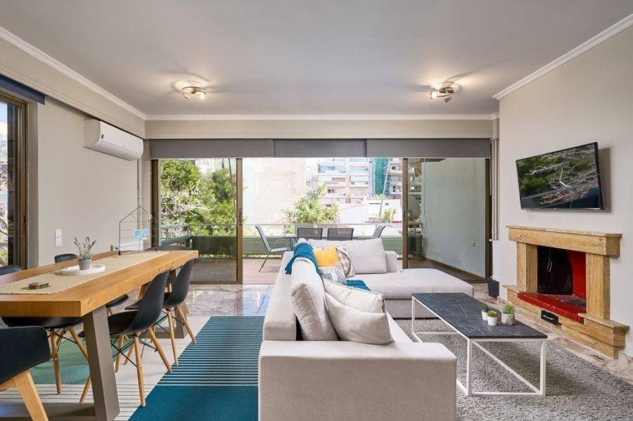 Glyfada, Center, Apartment For Rent, 85 sq.m., Property Status: Refurbished, Floor: 2nd, 1 Level(s), 2 Bedrooms 1 Kitchen(s), 2 Bathroom(s), Heating: Central - Petrol, View: Good, Energy Certificate: D, 1 parking(s), Floor type: Wooden floors + Tiles, Type of doors: Aluminum, Features: Elevator, Security door, Storage room, Fireplace, Cable TV, Internet Line, Electric Appliances, Double Glazed Windows, Window Screens, Balcony Cover, Balconies, Pets Allowed, For Investment, Luxury, Airy, Roadside, Bright, On Corner, AirConditioning, Solar water system, Painted, Renovated, Price: 1.680€. Yestayhomes, Tel: 6986749007