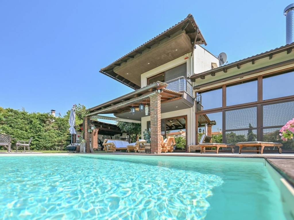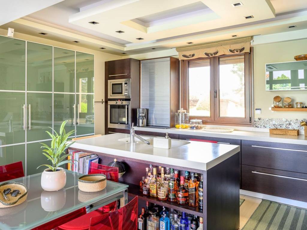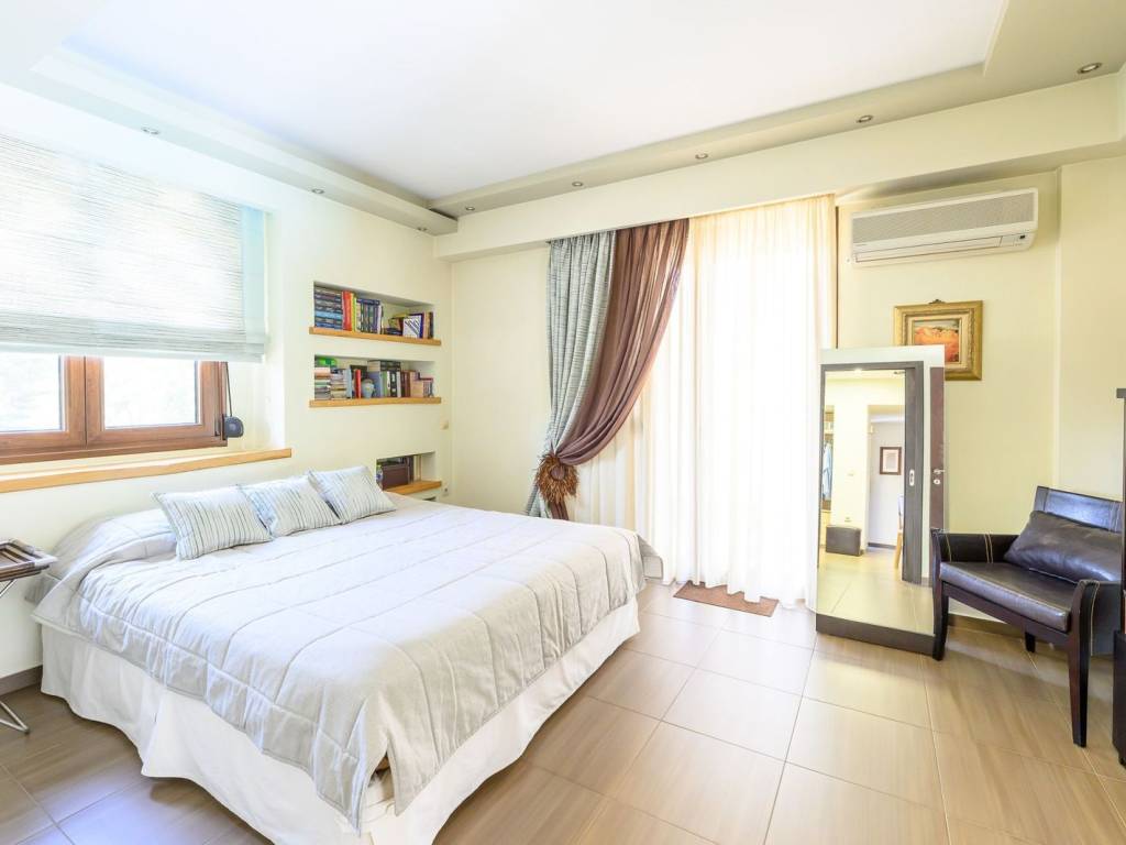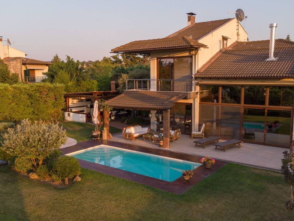 Nestled in the lush and tranquil area of Neo Rysio in Thessaloniki, this exceptional 400 sq.m. villa offers a unique blend of luxury, comfort, and functionality. Set on a 1,000 sq.m. plot with a beautifully maintained 600 sq.m. garden, the property features a spacious and private outdoor area with a 7.5 x 4.3-meter swimming pool, a handcrafted wooden gazebo with a BBQ, and a covered parking area for up to three vehicles. This residence promises a truly distinctive living experience in a serene and privileged setting, with views, located just 10 minutes from the shores of Peraia and only 20 minutes from the golden beaches of Halkidiki. The ground floor spans 110 sq.m. and welcomes you into bright, elegant living spaces, highlighted by refined details such as a modern ceiling-mounted fireplace and a high-end aesthetic throughout. The first floor, measuring 85 sq.m., includes two comfortable bedrooms and a spacious bathroom, as well as a third bedroom featuring an en-suite bathroom and a corner balcony with stunning sea views. From here, a handcrafted wooden staircase leads to a charming 25 sq.m. attic – a versatile space with a unique character. The 180 sq.m. basement is a true asset, featuring a separate entrance and the flexibility to serve as an independent residence or a dedicated leisure space. It includes a gym, sauna, jacuzzi, laundry area, ample storage, and more. The villa is equipped with advanced technical features such as a built-in central vacuum system with ventilation in every room, air ventilation system, electric shutters, automatic garden irrigation, a wheelchair-accessible ramp, and full infrastructure for natural gas connection. Both air conditioning and oil heating systems ensure year-round comfort. With a total of six bedrooms, five bathrooms, top-quality construction materials, and luxurious finishes including a Korient kitchen countertop, this home represents the epitome of modern, high-quality living. Location:Thermi is located in the south-eastern part of Thessaloniki, about 15 km from the center. Unique Features:Thermi is now one of the most affluent suburbs of Thessaloniki that has developed significantly in recent years. The area consists of several newly built properties as well as condominium complexes. In the wider area, residents find within walking distance the Mediterranean Cosmos Mall, one of the largest shopping malls in the city offering a variety of choices to visitors. Also in the area are several private schools such as Vassiliadis Schools. In the Municipality of Thermi is located the “Thermi’s Dam" which offers a breath of greenery to the residents highlighting the area as it has a rich natural environment and is ideal for short getaways outside the city. Another historical point of the area is the Baths of Thermi which may be upgraded in the coming years through a project aimed at their development. Accessibility: In close proximity to Thermi, the National Road 16 and the Motorway 24 pass through Thermi, connecting Thermi with the rest of Thessaloniki. OASTH serves the area with two bus lines. Investment Opportunity: The population of the area is growing, attracting a large number of investors.