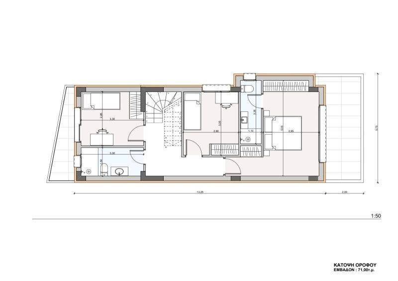 -1st FLOOR: It has 3 rooms, one of the three rooms is a Masterbedroom with its own bathroom (with window) and a dressing room. All rooms have a wardrobe, balcony door and terrace each. There is an additional luxurious central bathroom with window, bathtub or shower (depending on the buyer's wishes). ROOFGARDEN: Going up to the Roofgarden we have a panoramic view of the surrounding area. There is a pergola, all the plumbing and electrical installations for installing a kitchen, barbeque, TV, INTERNET. Also, an enclosed space is created that can be used as an additional storage room.
