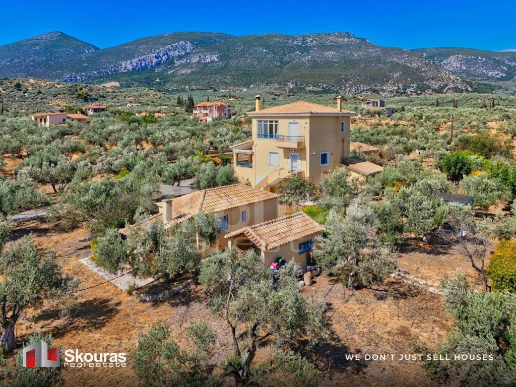 In a quiet neighborhood and within a 6,500 sq.m. plot, a detached house with a total area of 150 sq.m. is for sale, in very good condition. The residence consists of an elevated ground floor with a large living-dining room with an energy fireplace, a fully equipped kitchen, a WC, and a veranda with views of the surrounding mountains. On the 1st level, there are 2 bedrooms, a bathroom, a balcony, and a closed balcony with glass panels. In the semi-basement, there is a living room, a bedroom, a bathroom, and an internal storage room. In the large outdoor area, there is a closed garage for two cars, a storage room, and an outdoor seating area with a fully equipped kitchen and BBQ. There is the potential for constructing a swimming pool. The property features aluminum frames with double glazing and screens, a solar water heater, oil heating with autonomy per level, an alarm system, a security door, automatic watering for all trees with a borehole, cobblestone paving, and a water tank. An ideal choice for those seeking a peaceful and relaxing place to live. Only 9 minutes by car from the beaches of the Saronic Gulf. Skouras Real Estate #1 Greek Real Estate Agency in the Peloponnese 4 Offices: Nafplio | Kalamata | Corinth | Porto Heli 3000+ Properties | 18+ Years of Experience | Support in 5 Languages Marketing & Website – European Property Awards 2020 Marketing Techniques & Development – EPPA 2022 & 2024 Call Center: +30 27520-29529 Mobile: +30 6980033022 Email: alr@skourasrealestate.gr Property Manager: ROYS Alexis Over 3,000 properties available at: www.skourasrealestate.gr Note: The property information is based on data provided by the owners. Skouras Real Estate bears no responsibility for any inaccuracies. ID card or passport required for property visits. Map locations are approximate.