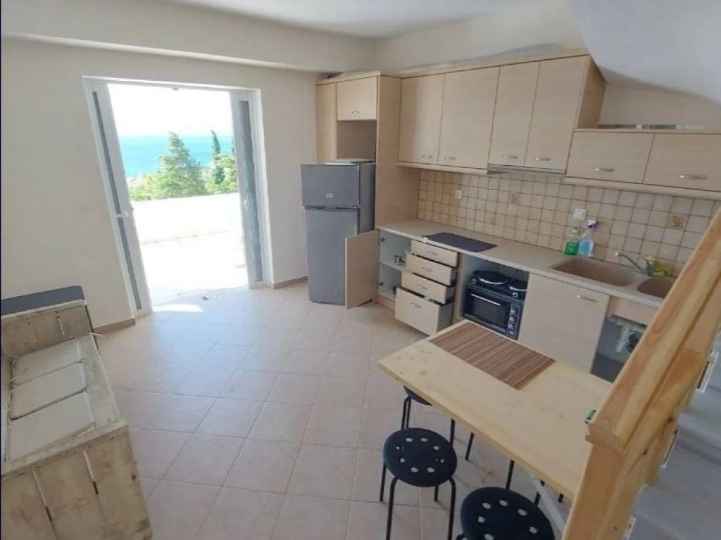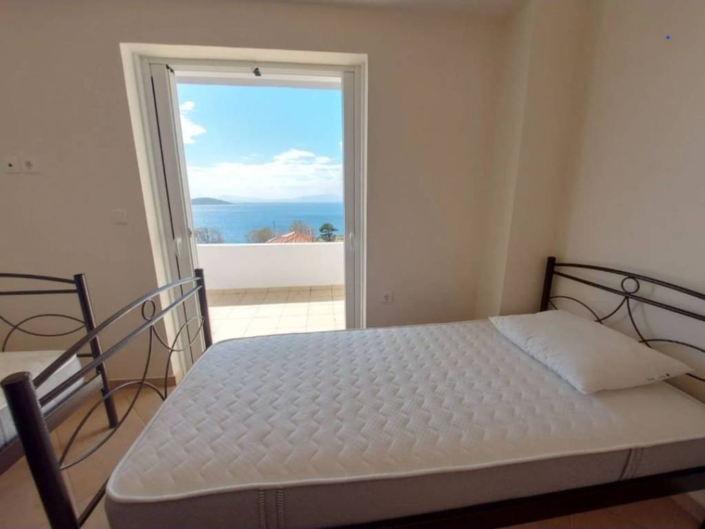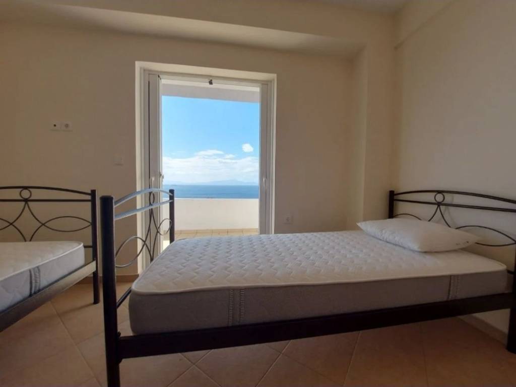 Detached house of 128 sq.m. for sale in Marmari, Evia, with unobstructed sea view. It consists of a living room and kitchen in an open-plan layout, 4 bedrooms, and 2 bathrooms. It features balconies and a yard.