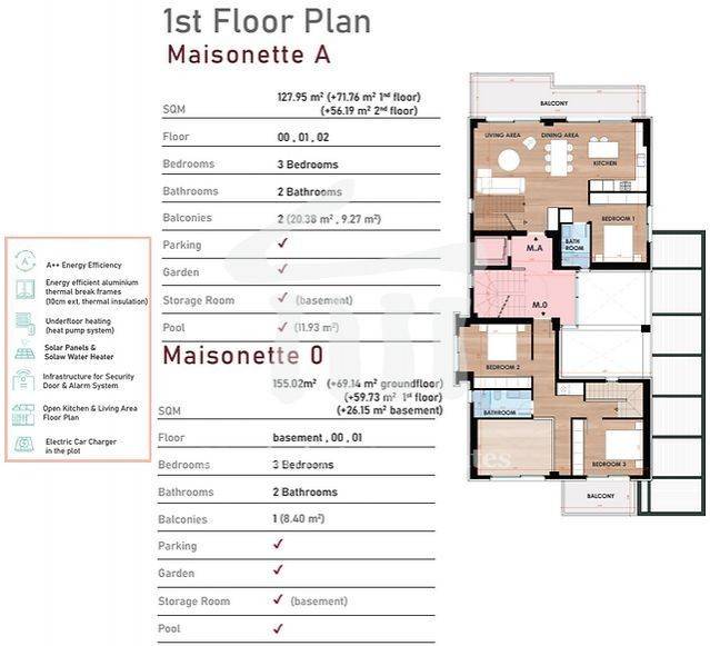Maisonette For sale, floor: Basement, Ground floor, 1st (3 Levels), in Glyfada - Aixoni. The Maisonette is 155 sq.m.. It consists of: 3 bedrooms, 2 bathrooms, 1 kitchens, 1 living rooms and it also has 1 parkings (1 Underground). The property was built in 2024. Its heating is Personal with Heat pump, Underfloor heating, Heating per level, Air conditioning, Solar water system, Sound insulation, Thermal insulation are also available with Triple glazed - Energy Efficient windows, the energy certificate is: A++ and its floors are Wooden. The property's status is: Excellent condition, Under construction, it is close to Metro, Transportation, Park, Sea, Seaside, School, Square, Church, Kindergarten, Public market, Super Market, City Center, Entertainment centers, it has Public square, Park, Sea, Mountain, Nature, Openness, Good, City views view. The Maisonette is With Facade, Airy, Luxury, Storage, Internal staircase, Swimming pool, Garden, Security door, CCTV, Security alarm, Security cameras, Fire extinguishing system, Playroom, Grass, Quiet neighborhood, Solar panels, Fiber line, Smart home, Electric shutters, Price: 900.000. Μανιάτης & Συνεργάτες, contact phone: 2104190703, email: info@e-mesitis.com, website: www.e-mesitis.com