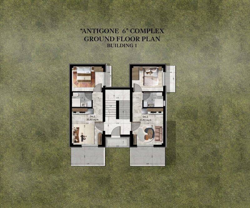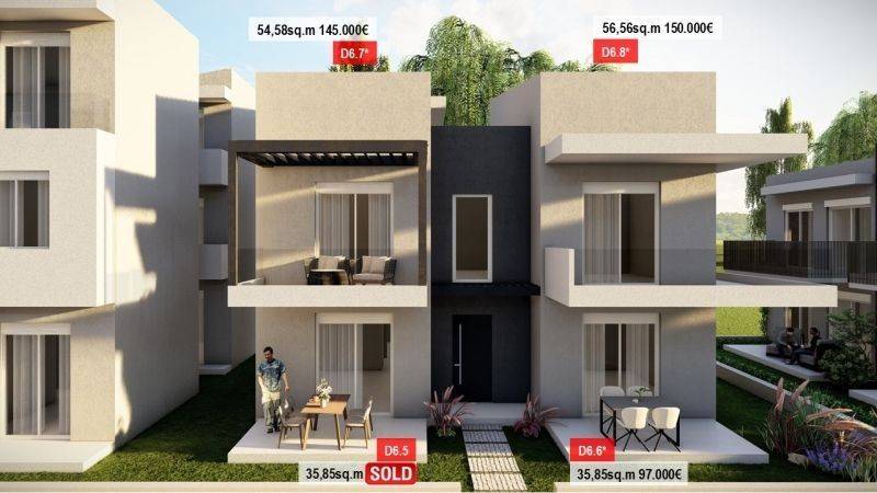 • 4 Ground floor apartments 35.85sq.m, consisting of a living room with kitchen, 1 bedroom, 1 bathroom.
