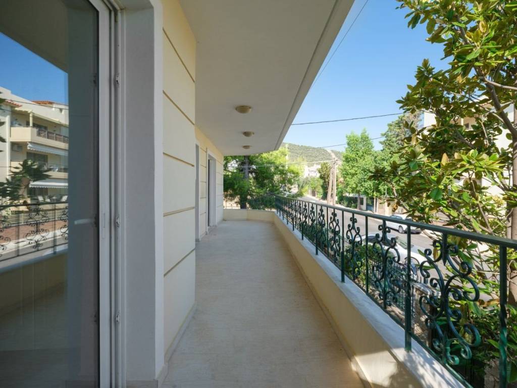 In a central location in Glyka Nera, on the outskirts of Ymittos, we find this comfortable apartment. The apartment is located on the 1st floor of a family duplex. Upon entering, we find the large central living-dining room. On the left, in the same space, we find the kitchen, which is open plan with large countertops and ample storage space. On the right, we find the three bedrooms, a full bathroom and a guest toilet. All bedrooms have their own wardrobe and access to a balcony. The apartment is free on all sides, airy and sunny. The floor is marble in the central area and parquet in the bedrooms. It is heated by a triple-action solar system and an oil-fired boiler with radiators while there is also the possibility of installing a heat pump and photovoltaics. It has an alarm system, security door, parking space in pilotis and a very large 45 sqm storage room in the basement. It is located very close to schools, the market, Attiki Odos and major roads. Glyka Nera is a quiet suburb in eastern Attica, located just 16 km from the center of Athens, between Paiania and Spata. The area offers direct access to Attiki Odos (the main ring road), the suburban railway (Paiania–Kantza station) and key bus routes, ensuring fast connections to both Athens and the airport. It combines urban convenience with a natural landscape, featuring open spaces, low building density, and views toward Mount Penteli. In recent years, it has seen significant residential development with modern housing and infrastructure, making it an ideal choice for families, professionals and investors.