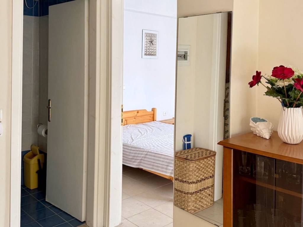 Nea Skioni, Halkidiki: For sale partially furnished apartment of 50 m², 1st floor, without elevator. It has 2 bedrooms, living room with kitchen, 1 bathroom. The apartment has air conditioning. The building was constructed in 2004. Distance from the sea is 50 meters, located on the second seaside line. Close to all local infrastructure. Price: €140,000 (negotiable). Akinita Market 2310 567 433.
