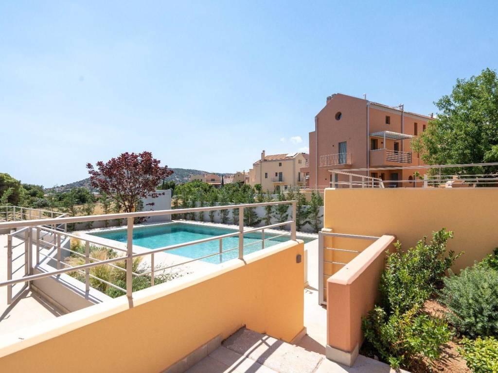 Maisonette For sale in Kalivia Thorikou - Lagonisi. The Maisonette is 227 sq.m. and it is located on a plot of 1.021 sq.m.. It consists of: 4 bedrooms, 3 bathrooms, 1 wc, 1 kitchens, 1 living rooms. The property was built in 2023. Its heating is Autonomous, Air conditioning, Solar water system are also available, it has Alluminum frames with Double glazed windows, the energy certificate is: B and its floors are Wooden. The property's status is: New development, it has Good view. The Maisonette is Painted, On Corner, Bright, Airy, Luxury and it also has the following unique features and advantages: Window Screens, Elevator, Storage, Loft, Internal staircase, Swimming pool, Garden, Security door, Security alarm, Playroom, Sattelite Receiver. Price: €625.000. NAIRealAct, contact phone: 2130299090, email: info@nairealact.com, website: