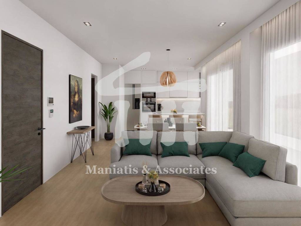 For Sale, Nea Smyrni - Agia Paraskevi: Apartment 77sq.m., 6th floor, under construction. It consists of a spacious living-dining room, a kitchen, 2 spacious bedrooms and 2 bathrooms. It has an elevator, security door, energy efficient aluminum frames and screens, thermal facade, autonomous gas heating, three-phase electricity, pre-installations for alarm, air conditioners and solar panel, parking space and basement storage as well as all the specifications of an energy class property: Α+. It is very bright, in a minimal and modern building with an ergonomic layout that meets the needs of every family or professional. It is located in a privileged neighborhood of Nea Smyrni that offers quick access to the center of Athens and the coastal road. PRICE: 420.000€ Maniatis & Co., Contact phone: 2104190703, email: info@e-mesitis.com, website: www.e-mesitis.com