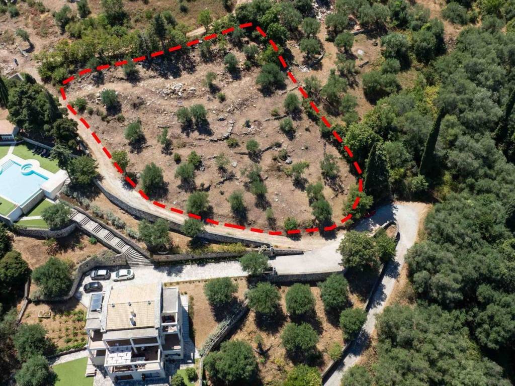 Beautiful square plot of 2,864 m2, buildable with a gentle slope and a well-maintained olive grove on Sinies Hill, a traditional village in Northeastern Corfu, offers panoramic views and overlooking beaches of Kalami, Kouloura, Kerasia, Agios Stefanos Sinies, and Avlaki, which are located on the northeastern coast of the island in the strait facing the Mainland coast. Included in the sale price of the plot are all the architectural studies that have been conducted, as well as the other documents that have been issued together with the building permit. Apart from its historical interest, the area is of exceptional natural beauty, consisting of lush olive groves, small sheltered coves with emerald and crystal-clear waters where sailboats safely anchor to dine at the famous fish taverns of the area, pristine beaches for swimming, fishing villages, and slopes filled with private villas ideal for walking. Around the plot, there are other areas of interest such as Old Perithia, Kassiopi and its castle, Nisaki, and across the Albanian coasts, the archaeological site of the ancient Greek city of Butrint while the city of Corfu is located 32 km away. Corfu is one of the Ionian Islands' most sought-after destinations, with a mature real estate market and strong international appeal. Known for its cultural heritage, excellent air connectivity, and premium tourist infrastructure, it continuously attracts buyers from Greece and abroad. Demand focuses on sea-view villas, tourist complexes, and historic properties in the Venetian old town. Despite competition, the market remains vibrant, offering high returns through short-term rentals and strong capital appreciation for luxury assets.