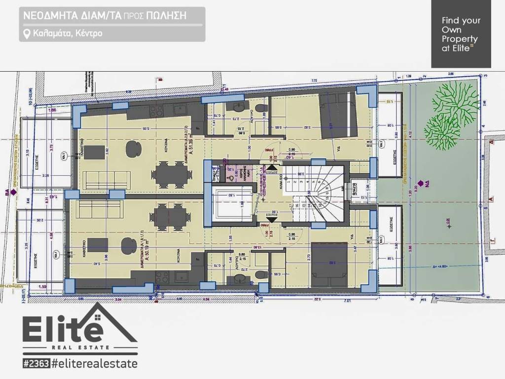 Luxury Apartment – 1st Floor (A2) A bright, dual-aspect apartment with flexible use, suitable both as a residence and as a professional office/service space. Features: Two balconies: • Northeast balcony: 7 sq.m. • Southwest balcony: 4 sq.m. Total area: 50.19 sq.m. Heating and cooling provided by two air conditioning units. Hot water supply via solar water heater. ✔️ These amenities are included in the price. The property offers the flexibility of being used either as a home or as a professional space, depending on the buyer’s needs. The Complex Located in the heart of Kalamata, just a few meters from the Central Square, a five-story residential building with an attic (Energy Class A) is under construction. Delivery is expected by December 2026. The luxurious new building will feature: One-bedroom apartments Two-bedroom maisonette Ground-floor parking area (pilotis) and basement storage rooms Key Features & Amenities Basement storage rooms (7–14 sq.m.) Independent heating & cooling with heat pump 7 cm external thermal insulation High-quality materials & modern design Security system installation Disabled access (ADA compliant) Location on the map is indicative and does not represent the exact property address. Full presentation available at: https://greek.is/2363