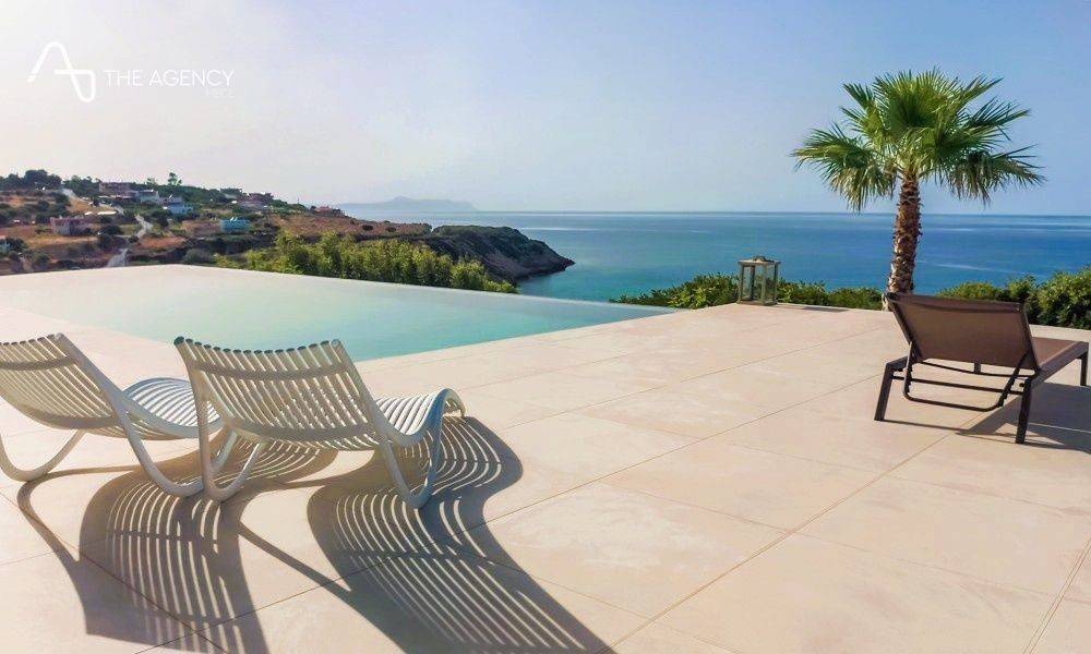 Thank you very much for your interest in our properties in Crete. You can view all available listings on our website: www.theagencymece.gr This luxury modern villa for sale is located in Gerani, Rethymnon, on a gentle slope at the outskirts of the village, offering uninterrupted panoramic sea and sunset views. The villa is newly built with a total living space of 200 m² on a 4,000 m² private plot. Property Features Plot Size: 4,000 m² Living Space: 200 m² Bedrooms: 4 Bathrooms: 3 + 1 guest WC Bright and airy main floor with large windows and direct access to the pool and terraces Fully equipped modern kitchen connected to the living room with an electric fireplace and dining area for 6-8 people 3 of the 4 bedrooms are en-suite Additional pantry and laundry spaces Basement with separate access: 1 guest bedroom, 2 spacious rooms for gym, playroom, or home cinema Outdoor Spaces Large gardens and covered terraces with sea views Infinity saltwater heated pool with sunbeds and umbrellas BBQ area with large dining table and outdoor kitchen Covered parking for 2 cars Small garden for growing local products 30 m² stone wine cellar in an underground cave, designed with unique taste Photovoltaic and solar panels for energy autonomy Location & Access Sandy beach only 3 minutes’ walk away Local tavernas, cafés, and mini-markets Easy access to the center of Rethymnon Ideal for year-round living or holiday rental investment Area Description Gerani – Traditional village 5 km west of Rethymnon, offering tavernas, cafés, and mini-markets. Its elevated position provides stunning sea views, making it a popular residential area. FAQ Is the villa move-in ready? Yes, newly built and fully equipped. Can it be used for short-term rental? Yes, it offers excellent rental potential. Is there a private pool? Yes, infinity saltwater heated pool with sunbeds. How far is the beach? Just 3 minutes’ walk. Contact The Agency MECE – Real Estate & More info@theagencymece.com 6939400410 Paraskevi Pitsouli www.theagencymece.gr