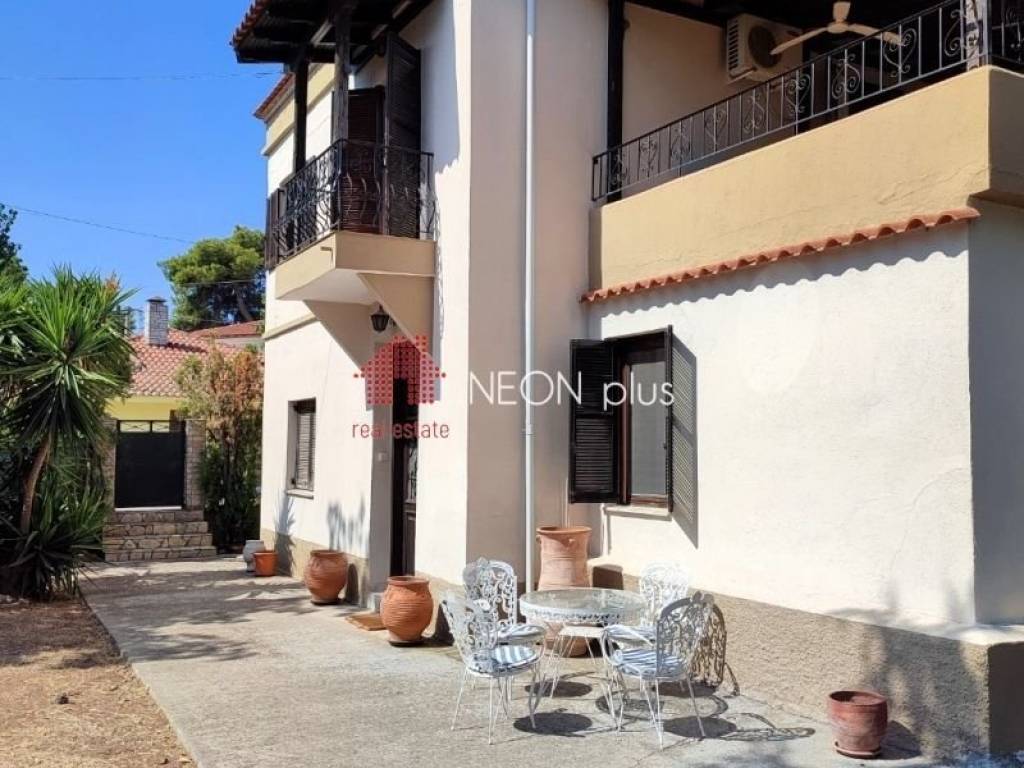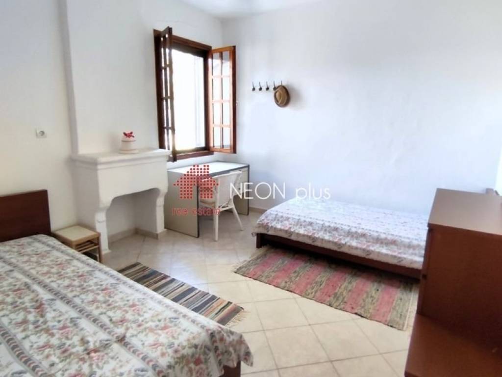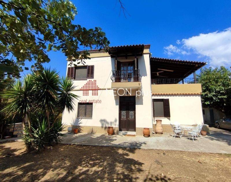 Property code: 1-431 - Moudania Agios Mamas FOR SALE exclusivity a 2 floor detached house of total 132 sq.m in a 800 sq.m land. It has 5 bedrooms, 2 kitchen areas, living room, 2 bathrooms, a large veranta, a large covered 27 sq.m balcony on the first floor and 2 ground indoor storage spaces of 45 sq.m. Outdoor, there is also an extra storage room of 22.50 sq.m that can become an individual apartment. The plot of the property is corner, close tot he park of the vilage, full of many kinds of fruit trees and olive trees. The house is ideal for families and also for proffesional exploitation. - Price: 235.000 €