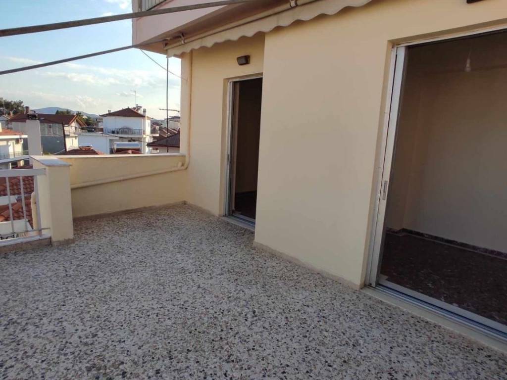 Ενοικιάζεται διαμέρισμα ρετιρέ 2ου ορόφου 55τμ διαμπερές με δύο μπαλκόνια εκ των οποίων το ένα είναι αρκετά μεγάλο.Εχει τέντες και στα δύο μπαλκόνια.Ειναι φρεσκοβαμενο.Εχει εύκολο παρκάρισμα στο δρόμο κάτω από το σπίτι. Βρίσκεται κοντά στην αστυνομία δίπλα σε σούπερ μάρκετ, δημοτικο και νηπιαγωγείο.Εχουν τοποθετηθεί 2 κλιματιστικά inverter Carrier 12.000 btu με wifi