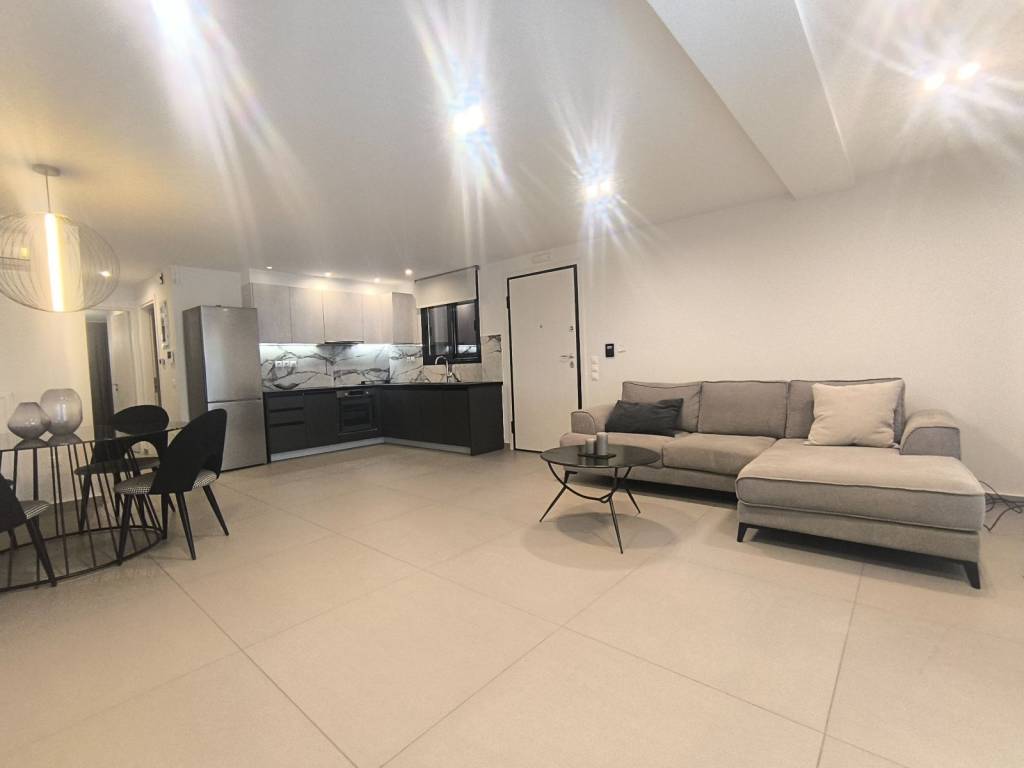 Exclusively available through our office, this elegant 82 sq.m. ground-floor apartment, built in 2022, offers modern living just 100 meters from the sea and includes a private underground parking space. Located in a contemporary residential building, the property stands out for its abundant natural light and smart, functional layout. The apartment features a spacious open-plan living and kitchen area, one bathroom, and two (2) comfortable bedrooms, including a Master Bedroom. It also boasts two large verandas at the front and rear, ideal for relaxing or entertaining. The property is delivered fully furnished and equipped with all kitchen electrical appliances, as well as a fully installed alarm system — ready for immediate occupancy. Its prime location provides easy access to the local market, main avenues, and public transportation, making it an excellent choice for both permanent residence and investment.