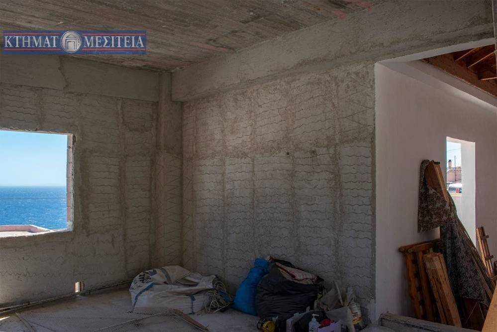 An external staircase from the kitchen leads to the second unfinished floor, where a spacious balcony offers beautiful sea views. There is also access to the building's terrace.