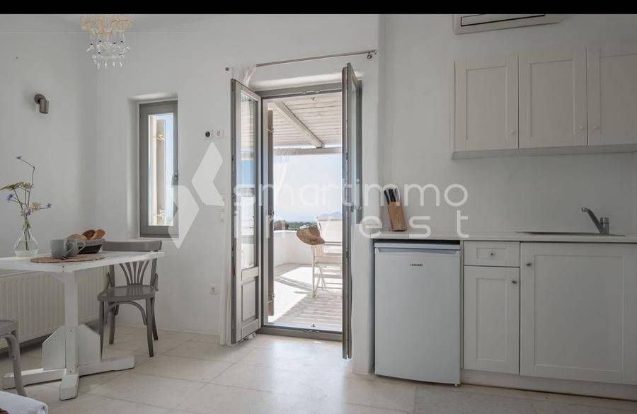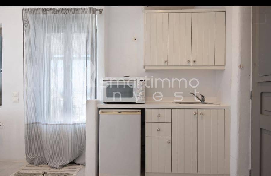 Just 350 meters from the beach of Mikri Santa Maria in Paros, within an elegant complex of Cycladic residences, this unique 42 sq.m. first-floor apartment is available, featuring a spacious 40 sq.m. private veranda with unobstructed views of the Aegean Sea. The interior consists of one bedroom, a bright open-plan living room with kitchen and dining area, and a bathroom. The large veranda with pergola offers the perfect spot for relaxation while enjoying breathtaking sea views. The apartment is fully furnished and equipped with modern electrical appliances, air conditioning, and all essential amenities, while also including a private parking space. Built in 2017, it beautifully blends modern design with traditional Cycladic architecture and high-quality finishes. Its prime location, within walking distance to the beach and just minutes away from Naoussa, makes it ideal both as a private holiday home and as a high-return investment for touristic use.