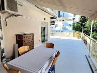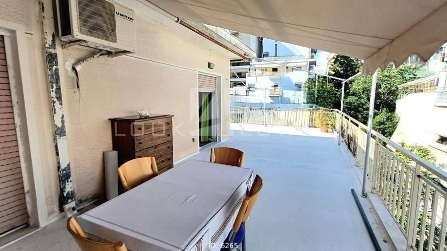 Gkyzi, Arios Pagos - Apartment 97sqm unfurnished, bedrooms 2, levels 1, 5th (97sqm), penthouse, good condition, year built 1980, energy class E, living room, hall, kitchen, bathroom, wc, heating type: central (oil), quiet, luminous, corner, unobstructed view, frontage, storage space 10sqm, balconies, large balconies, balcony 100sqm, tents, elevator, loft storage, aluminum frames, wood floors, separate kitchen, pets allowed, residential zone, access from asphalt, close to bus stop (up to 100m), close to metro/train (up to 1000m), close to super market (up to 200m).