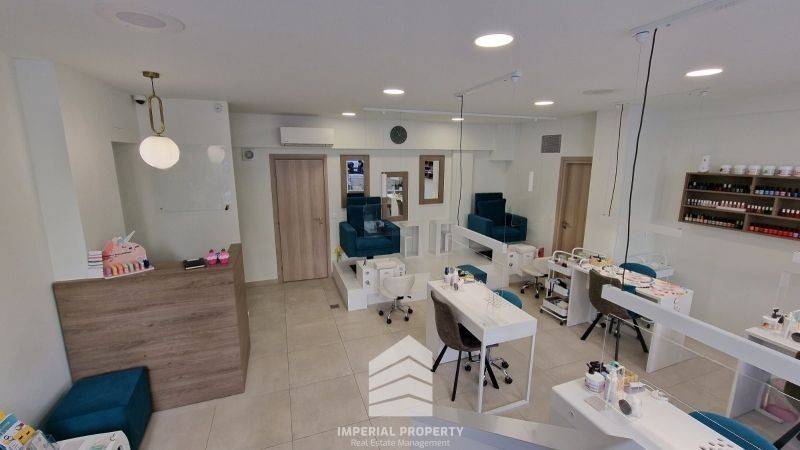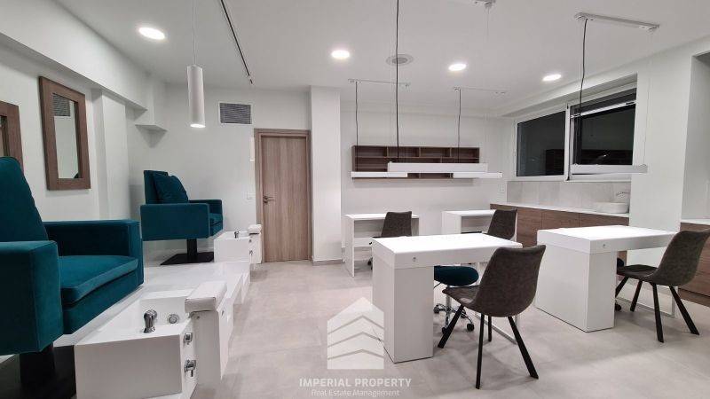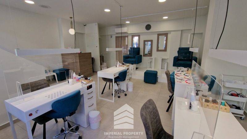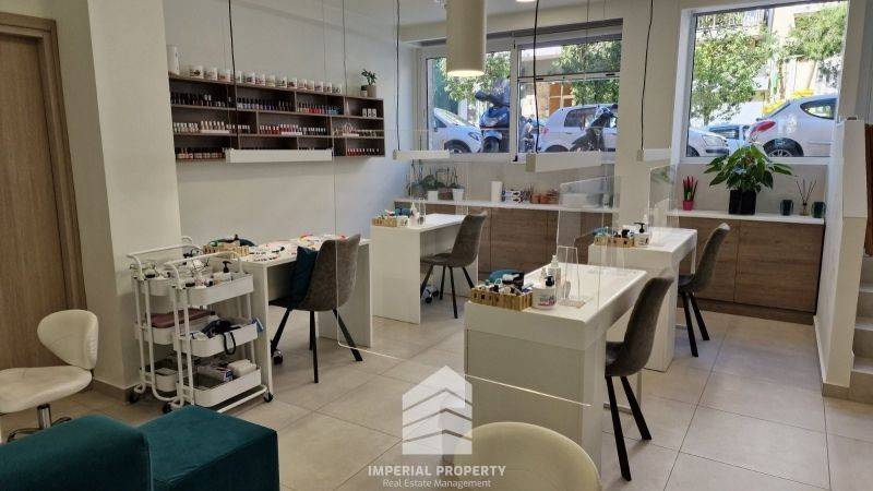 N. Smyrni for sale Semi-basement store 70 sq.m., very bright, fully renovated, two toilets, kitchen. The main space consists of 4 Manicure positions and 2 pedicure positions. There is the possibility of adding other work positions. There is also a second space that includes a massage bed and a warehouse. It is located on a central commercial street with shops. It is 300 meters from Alsos N. Smyrni and 200 meters from Syngrou Avenue. Price 120,000 € Real Estate Agency Imperial Property Tel. 6906385904