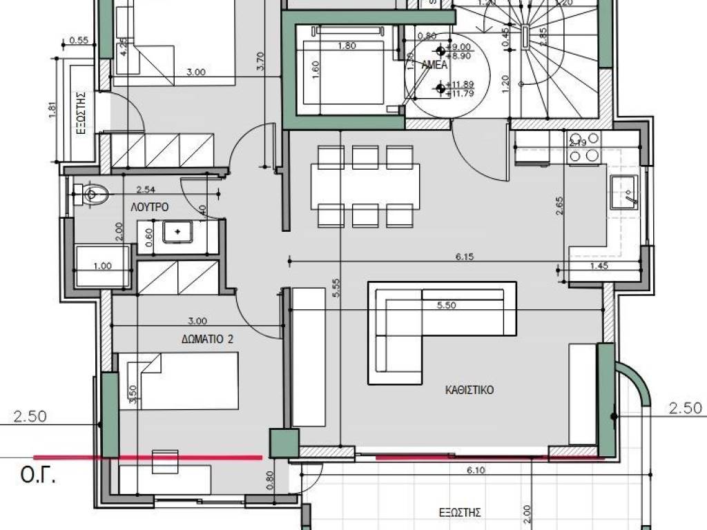 Οροφοδιαμερισμα 77 τ.μ στον 3ο όροφο . 1. 3ος όροφος περιλαμβάνει : • Ενιαίο χώρο καθιστικού - τραπεζαρίας – κουζίνας 6.15 X 5.50 • Δυο δωμάτια • Ένα λουτρό • Μια αποθήκη εντός του δωματίου • Εξώστη προς Νότο και Δύση (πρόσοψη) διαστάσεων 6.10 Χ 2,00 2. Μια στεγασμένη θέση στην πρασιά 3. Μια αποθήκη στο υπόγειο 6,10 τ.μ. Ενεργειακά το κτίριο κατατάσσεται στην ενεργειακή κλάση Α με θερμοπρόσοψη πάχους 8 εκατ. και λιθοσωματα καθώς και ενεργειακά κουφώματα αλουμινίου Το διαμέρισμα θα διαθέτει ατομικό λέβητα αερίου για ζεστό νερό χρήσης και θέρμανση και προεγκατάσταση κλιματισμού και συναγερμού.