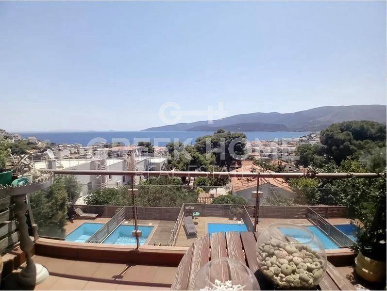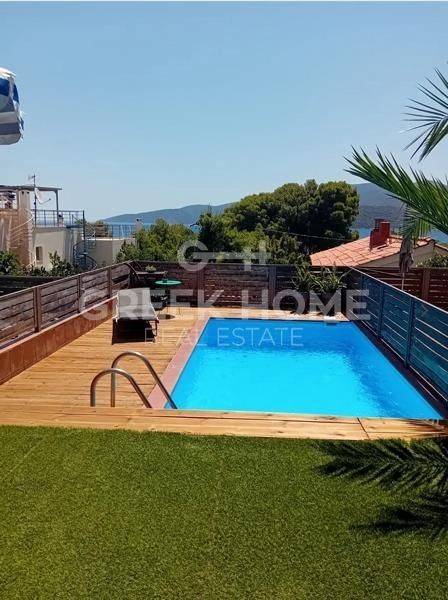 Korinthos, Kechries - Tangent Maisonette 150sqm plot 500sqm, fully furnished, bedrooms 3, levels 4, basement - ground floor - 1st - 2nd, excellent condition, year built 2010, energy class A, living room, 2 kitchens, 2 bathrooms, heating type: autonomous (oil), air condition, parking open space, quiet, dual aspect apartment, luminous, unobstructed view, frontage, storage space, fireplace, balconies, large balconies, garden, aluminum frames, double glazed windows, door screen, ceramic tiles floors, secure door, luxurious, swimming pool, private pool, playroom, east-southern orientation, close to sea (up to 100m).