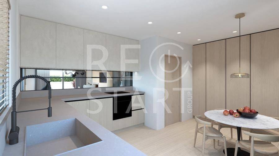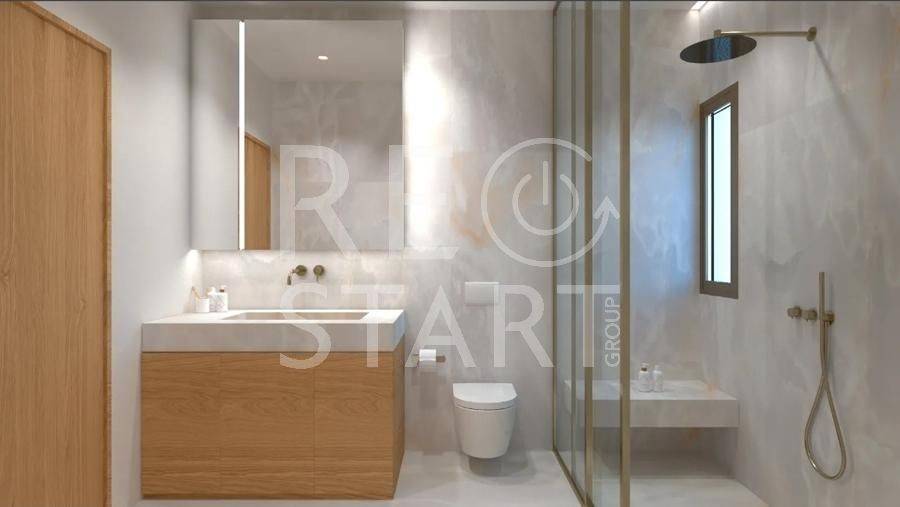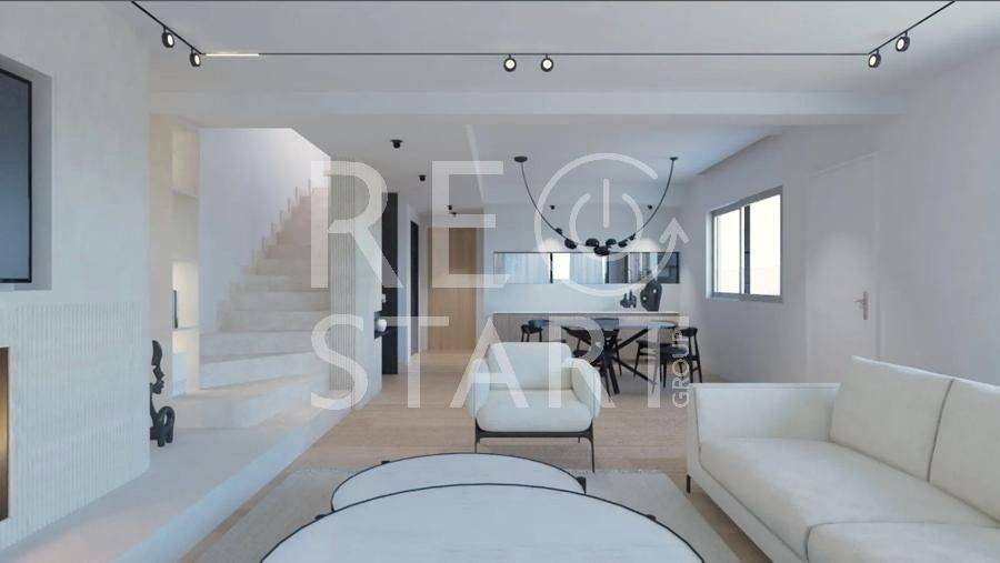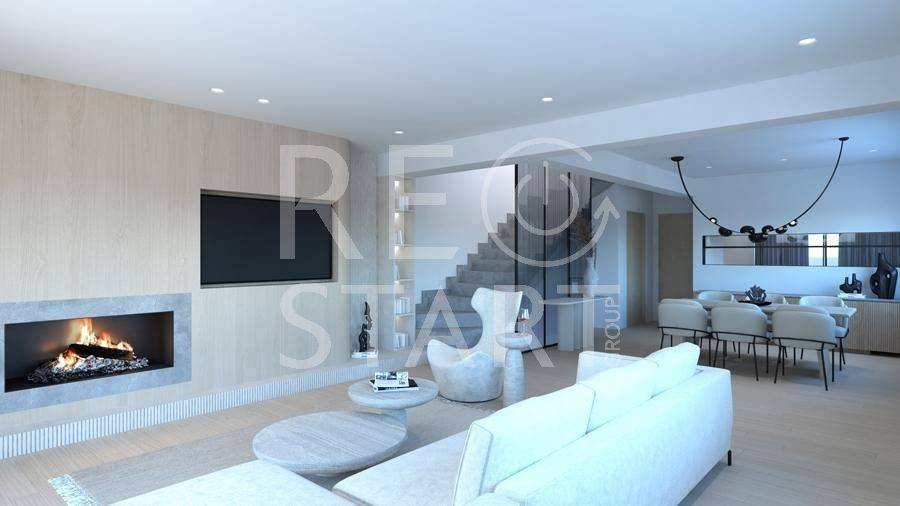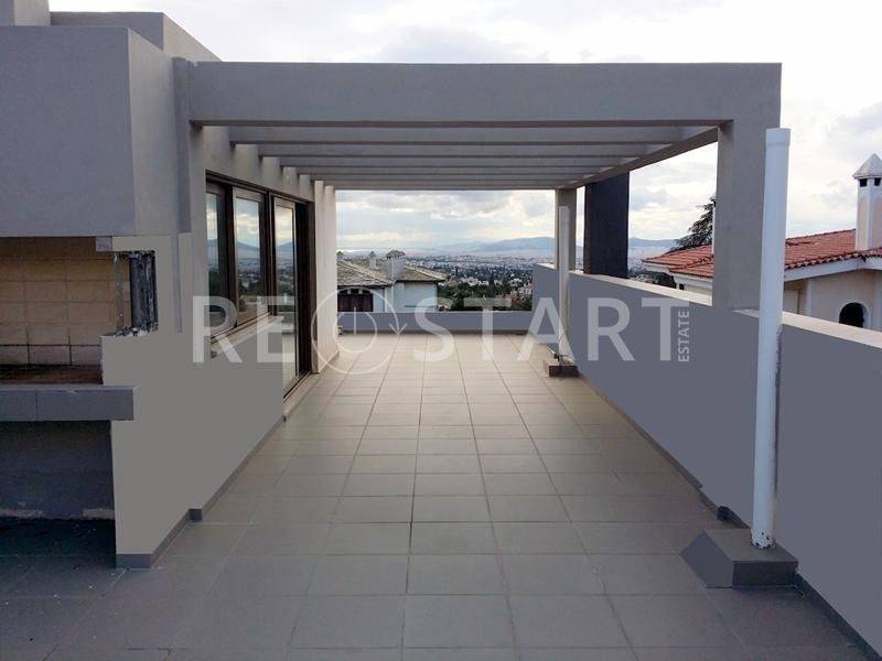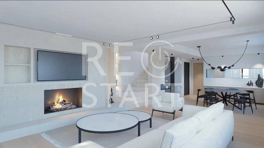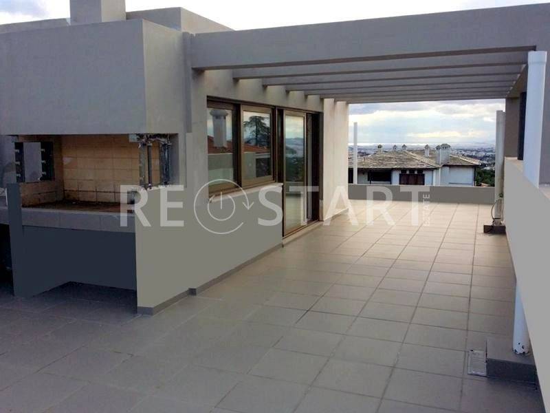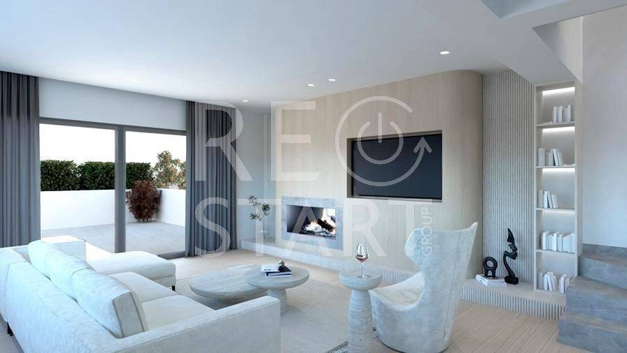 The independent maisonette of high minimal aesthetics and excellent construction, 3 levels is under construction and is delivered complete at this price. It consists of a living room with fireplace, 2 kitchens, 3 bedrooms (1 en suite), 4 bathrooms, playroom, 1 maid's room, laundry room. It has, Heat pump, underfloor heating, air conditioning-heating, boiler, thermal break aluminum frames with screens and electric shutters, oak floors, three-stop elevator, 2 security doors, alarm, satellite antenna, internet network, roof garden with bbq and unlimited view , garden, storage and 3 underground parking spaces. It is located in a particularly privileged spot, in a quiet neighborhood at a very short distance from Politias central square. Delivered within 4 months of purchase.
