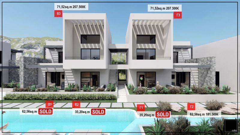 It consists of 20 modern residences, each with its own style and functional layout. The houses have comfortable interiors, terraces overlooking the garden or the sea, while their architecture follows the philosophy of harmony with the natural environment. Their design emphasizes brightness and relaxation, creating ideal conditions for a comfortable stay throughout the summer.
