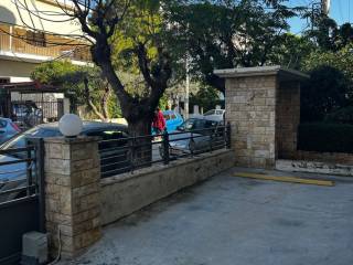Θέση parking πυλωτής. Η πρόσβαση στο parking γίνεται μέσω ηλεκτρικής συρόμενης θύρας με τηλεχειριστήριο.