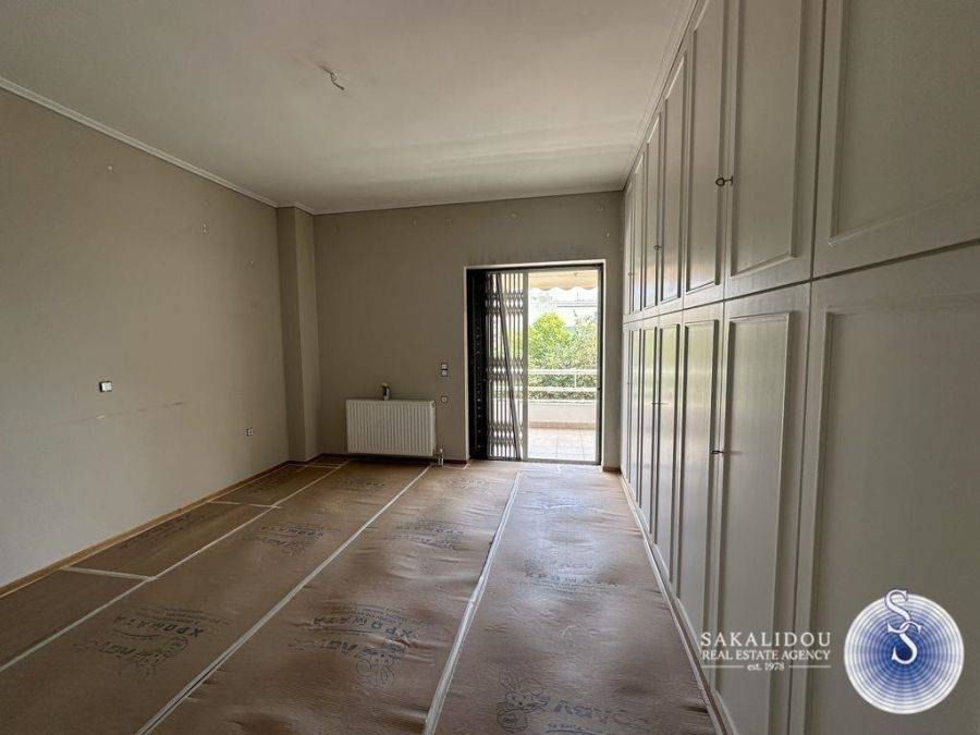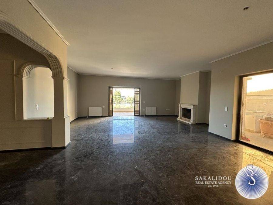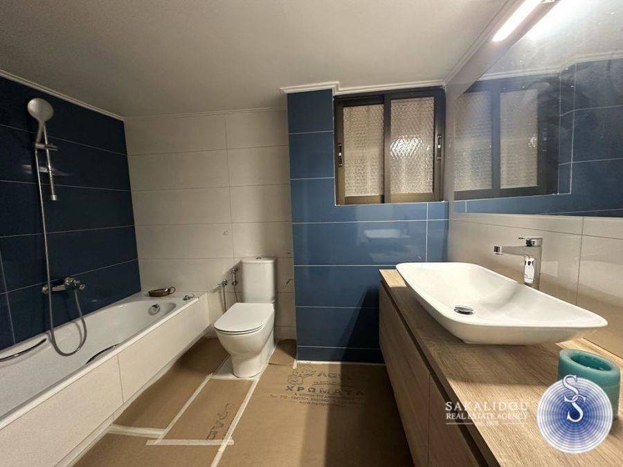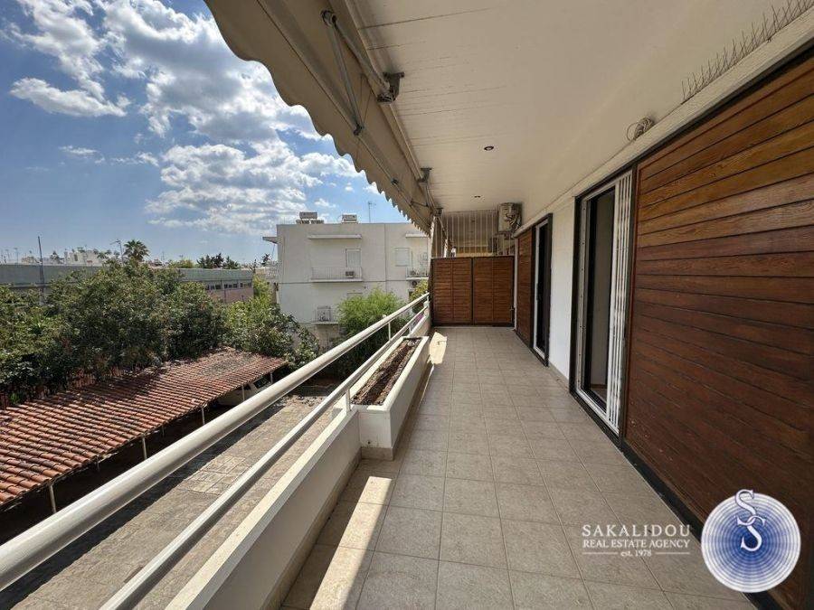 GLYFADA DOWN, great 2nd floor apartment of 177 sq.m. with horizon, on a plot of land of 2,000 sq.m. with large garden, recently renovated, construction `83, very bright, comfortable living room/sitting room with black marble, fireplace, big balconies, awnings, 3 large bedrooms (1 Master) with oak floors, modern kitchen, 2 bathrooms, wc, autonomous heating (natural gas), air conditioning, laundry room, alarm system, oak shutters, 2 parking spaces, near the central square and the sea on foot, close to market area and transportation.