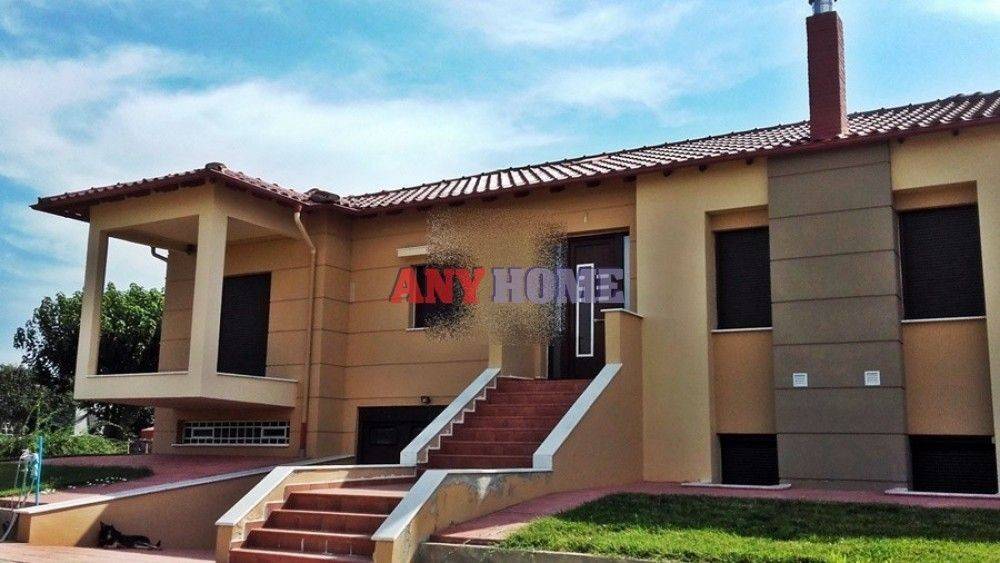 Lagadas, Kolchiko: Luxurious house, at the beginning of the village, on a plot of 5000 sq.m., with many decorative trees and many fruit trees. 2 levels with internal staircase. The lower level includes storage space, closed garage with heating, as well as an independent apartment with its own entrance, kitchen, living room, large bathroom with storage and room. The upper level includes a large kitchen, bright living room with large openings and great views, fireplace, 3 bright rooms and 2 bathrooms. All rooms have underfloor heating. It also has an attic of 130 sq.m. which can be used as storage space. With direct access to the center of Thessaloniki, in public transport, next to the thermal baths of Lagadas. In excellent condition, only the 1st level was inhabited.