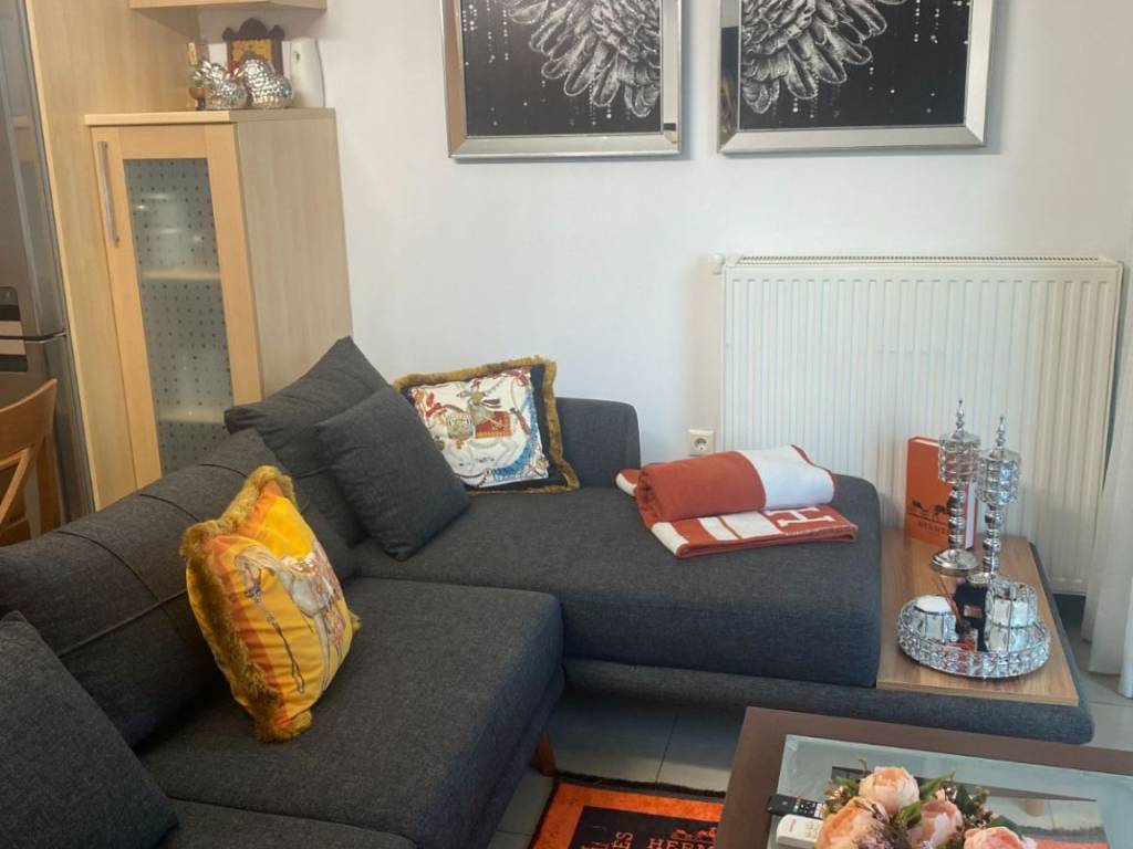 This fully furnished apartment is ideal for those seeking a modern and comfortable living space. The apartment consists of a bedroom, an open-plan kitchen, dining, and living room, and a bathroom. The furnishings are modern and luxurious, creating a sense of comfort and style. The kitchen is fully equipped with all necessary appliances, including a stove, oven, dishwasher, and a washer-dryer for your clothes. The apartment also includes two televisions, and 5G WiFi is provided for ultra-fast internet speeds. For heating and cooling, the property has autonomous heating and two air conditioners (one in the bedroom and one in the open-plan area) to ensure the ideal temperature year-round. Safety is a top priority, as the apartment is equipped with security cameras, an alarm system, and a security door. You can also relax on the balcony, which has outdoor furniture and a "mushroom" style heater, perfect for cold winter nights. The apartment is in a completely safe and quiet area, directly behind the Panionios Stadium and surrounded by greenery. Access to public transportation is extremely easy, making your daily commutes simple and fast. This is an excellent choice for anyone looking for a quality and functional space in a prime location.