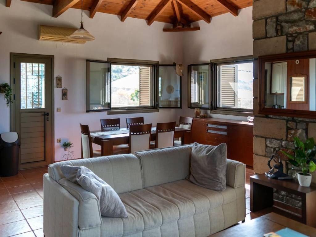 In one of the most privileged and up-and-coming locations of West Mani, in the peaceful and traditional village of Neochori, a beautifully renovated maisonette of 128 sq.m. is available for sale, situated on a privately owned plot of 234 sq.m., approximately 1,000 meters from the sea. This property offers an ideal combination of privacy, comfort, and authentic Mediterranean atmosphere, making it a perfect choice for both personal use and high-return investment. The residence is developed over two levels. Originally built in 2005, it underwent a complete renovation between 2019 and 2022, with special attention given to functionality, aesthetics, and energy efficiency. The ground floor, with a total area of 75 sq.m., includes three bedrooms — two of which feature built-in wardrobes — a spacious bathroom with a shower, and a practical storage area beneath the staircase. All rooms are equipped with air conditioning units, ensuring year-round comfort. The upper floor, 53 sq.m., is an open and bright space comprising a living room, dining area, and a fully equipped kitchen. A working fireplace and an A/C unit with heating and cooling capabilities provide warmth during the winter and coolness in the summer, making the home fully functional throughout the year. Two outdoor verandas — one ideal for enjoying your morning coffee and the other offering unobstructed sea views — enhance the feeling of openness and connection with the natural surroundings. The property features energy-efficient double-glazed windows with insect screens. Major upgrades were completed in 2022, including the extension of the upper veranda and the addition of a third bedroom on the ground floor. The plot is landscaped with simple Mediterranean vegetation — including a lemon tree, an orange tree, and an olive tree — which requires minimal maintenance. There are also two private parking spaces on the property. Neochori, the village where the property is located, is a traditional and serene settlement that offers all basic amenities year-round, such as tavernas, cafés, a bakery, and a mini market. Additionally, its location is highly strategic, as it is equidistant from both Stoupa — known for its golden beaches, tourist shops, and vibrant summer life — and Agios Nikolaos, with its picturesque harbor, traditional tavernas, and essential year-round services such as a pharmacy, supermarket, ATM, gas station, and more. The asking price is €299,000, and considering the excellent condition of the property, its strategic location, and its modern features, this residence represents a highly attractive opportunity for both personal enjoyment and investment purposes. The property also offers significant income potential, either through short-term holiday rentals (Airbnb) or long-term or seasonal leases to couples or families seeking a high-quality, peaceful home in the heart of Messinian Mani. Access is easy and convenient — just 60 minutes from Kalamata International Airport and approximately 3.5 hours from Athens — further enhancing the overall value and appeal of the property. In short, this is a home of unique character, high aesthetic quality, and significant return potential, located in one of the most beautiful and authentic corners of southern Greece.
