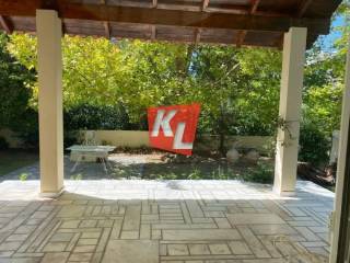 The residence offers four bedrooms, including a master suite with en-suite bathroom and walk-in closet, three additional bathrooms (one with jacuzzi) and a guest WC. The living room features Dionysos marble floors, a fireplace and a large balcony overlooking the garden, while the dining area also opens to the garden. There is a study with three windows, a large fully fitted kitchen with fireplace, pantry and direct garden access, as well as an attic and additional storage space.