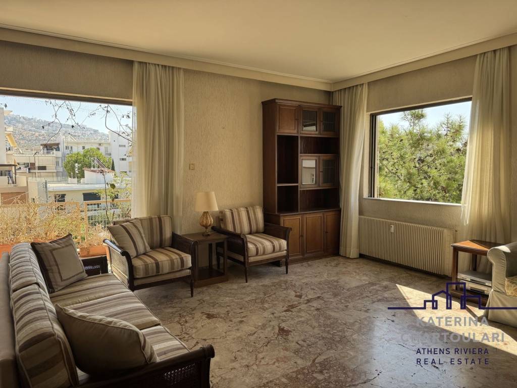Glyfada, Kato Glyfada — In a quiet and unique location just a few steps from the center, this beautiful 3-bedroom whole-floor apartment on the 3rd floor offers 138 sq.m. of elegant, comfortable living. Bright and spacious, it features a large living room with a fireplace and opening onto wrap-around balconies, a separate kitchen, 3 bedrooms with wood flooring, a large bathroom, and a guest WC. The apartment requires renovation, offering the opportunity to tailor the space to personal needs and style. It is equipped with natural gas heating and includes one parking space in the pilotis, along with convenient in-apartment storage. Price: €630.000. Katerina Chartoulari Real Estate, contact phone: 2108976105, email: info@chartoulari.gr, website: