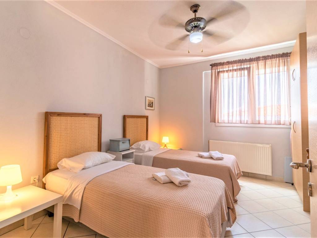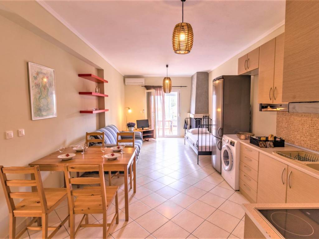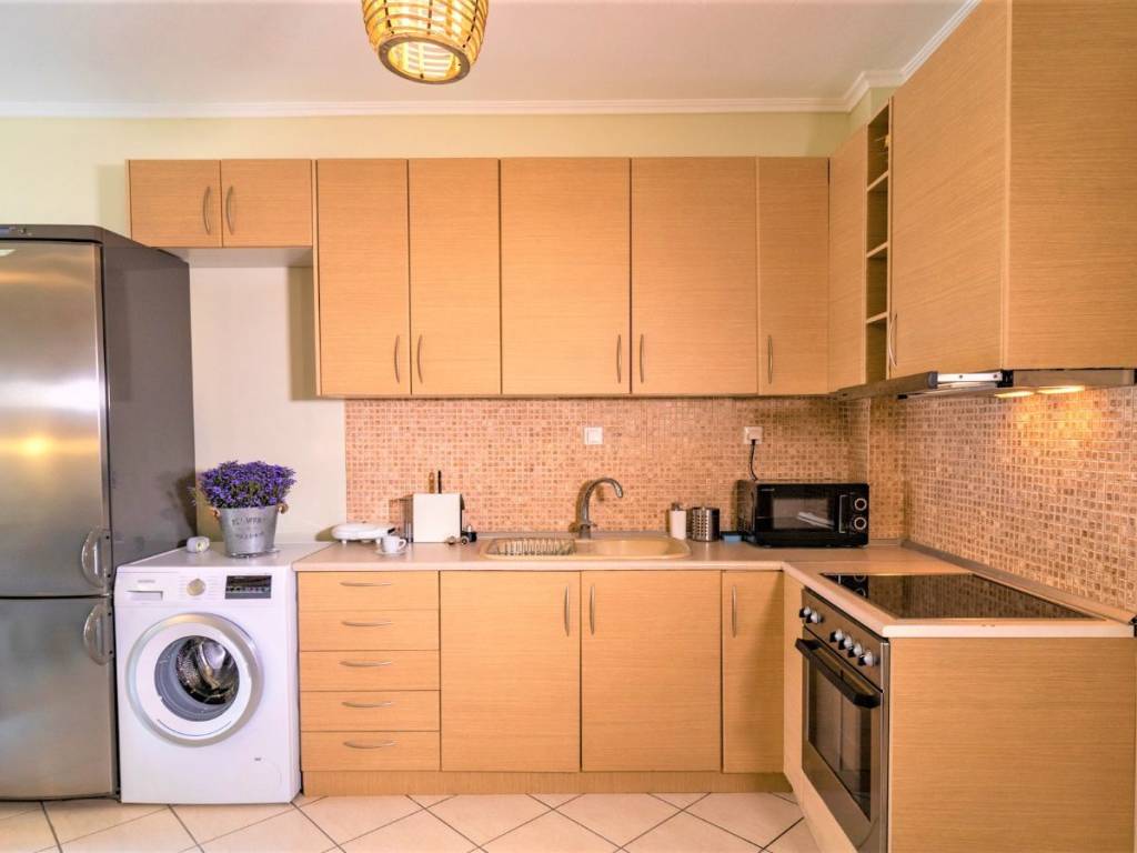 2nd floor penthouse apartment 70 sq m with 2 bedrooms and garden view, living room, kitchen and bathroom. Renovated bathroom, built-in oven and ceramic hob, washing machine and 2 ac's. Within the settlement of Kallithea near the center, in a small residential complex with a garden. Free communal wifi 30mbps and also electricity and water/sewage. Quiet street with free parking. In the building there are 5 more apartments available for rent. Seasonal rental from 1/5/26 to 30/***/******* Price 7,800.