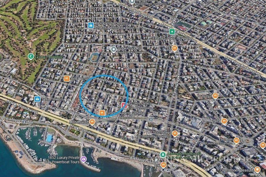 GLYFADA – center, in an excellent location, Plot of 700 sq.m (with old building). Frontage of 24.5 m and a depth of 28.5 m. Building Coefficient (FAR): 0.8 | Coverage: 33% | Zone Price: €3,800/sq.m. Located very close to the under-construction Esplanada and the underground municipal parking, 250 m from Glyfada’s shopping area, 650 m from the beach, 1.8 km from the 5* "One & Only Resort" beach, 2 km from the Golf court, 2.5 km from the Metropolitan Park of Elliniko, and 24 km from the intern. airport. An area with strong residential and commercial development, in one of the most sought-after locations of the Southern Suburbs. The plot is suitable both for residential development and for commercial use (offices, boutique hotel), given its prime position and the upcoming large-scale developments around Elliniko and the Esplanada.