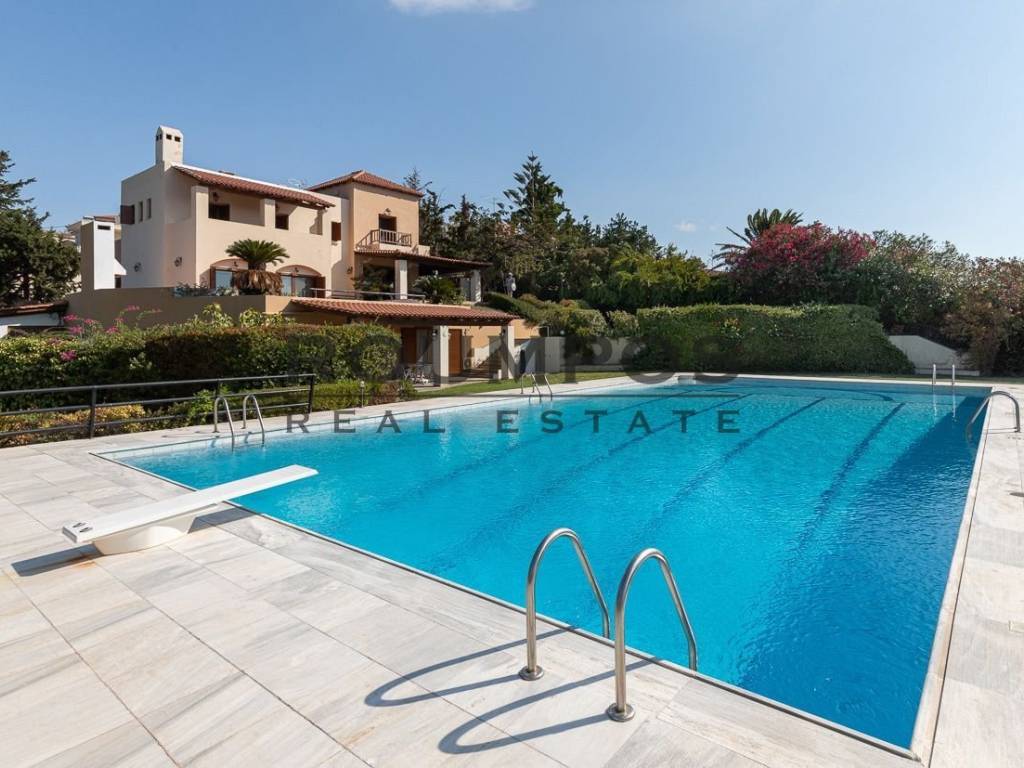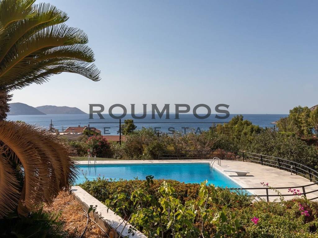 We present to you a Stunning villa in Anavyssos, offering panoramic sea view and an excellent orientation. Built in 1986, the property has a total surface of 460 sq.m., set on a 4,000 sq.m. plot, and is developed over three levels (basement, ground floor, and first floor). Thanks to the natural slope of the land, the pool level (basement of 195 sq.m.) functions as a ground floor, with direct access to the garden. The main ground floor (130 sq.m.) features bright reception areas and an open-plan kitchen, while the first floor (130 sq.m.) accommodates spacious bedrooms with verandas and panoramic views. In total, the villa offers 9 bedrooms (1 master, 2 children’s rooms, and 6 guest bedrooms), 4 bathrooms, 1 WC, 2 open-plan kitchens, and 3 living rooms designed for comfort and functionality. The outdoor areas combine aesthetics and practicality, creating an ideal setting for relaxation, entertainment, and leisure activities. The centerpiece of the property is a stunning 200 sq.m. swimming pool with salt electrolysis (fresh/saltwater), ranging from 1.20 m to 4 m in depth. Surrounded by a landscaped garden with lawn, trees, automatic irrigation, and a BBQ area, it creates the perfect setting for outdoor living. Additional amenities include a sports court, three enclosed parking spaces with EV charging, a storage room, and expansive verandas with panoramic sea views. The villa also offers air conditioning, solar water heater, aluminum and wooden frames with double glazing, mosquito screens, appliances, alarm system, night electricity meter, and an internal staircase. Featuring wood and tile flooring, the residence is bright, airy, and sunlit and well maintained, yet offering scope for partial renovation. Distances: Sea: 200 m Lavrio Port: 19 km Airport: 32 km Roumpos Real Estate