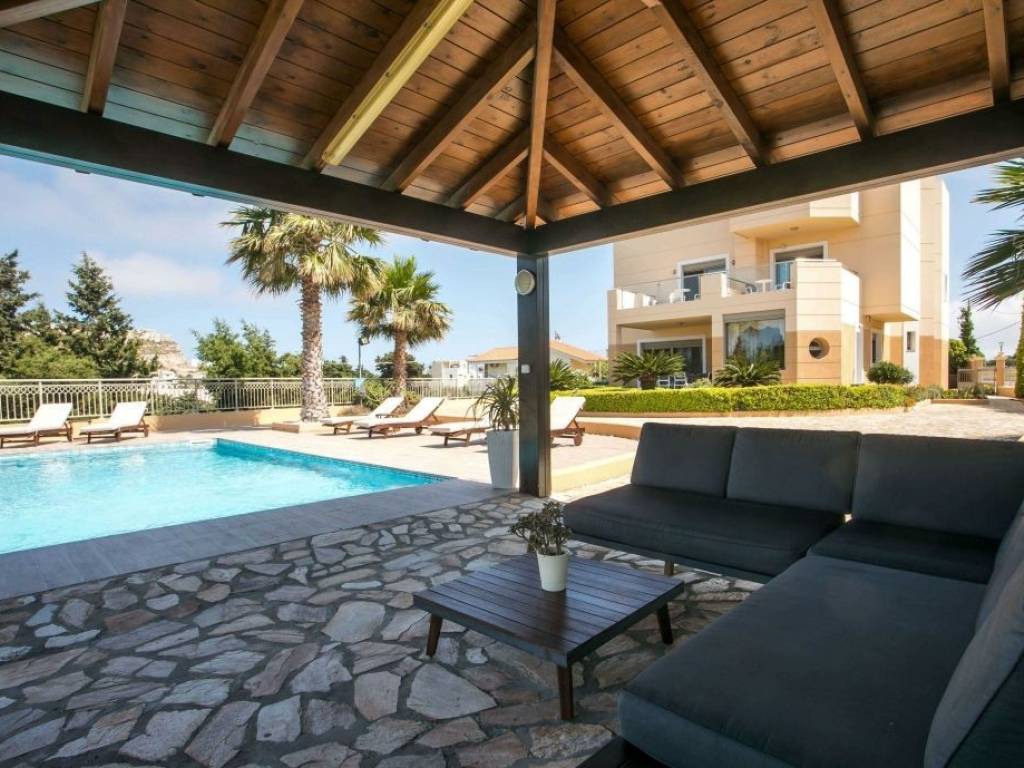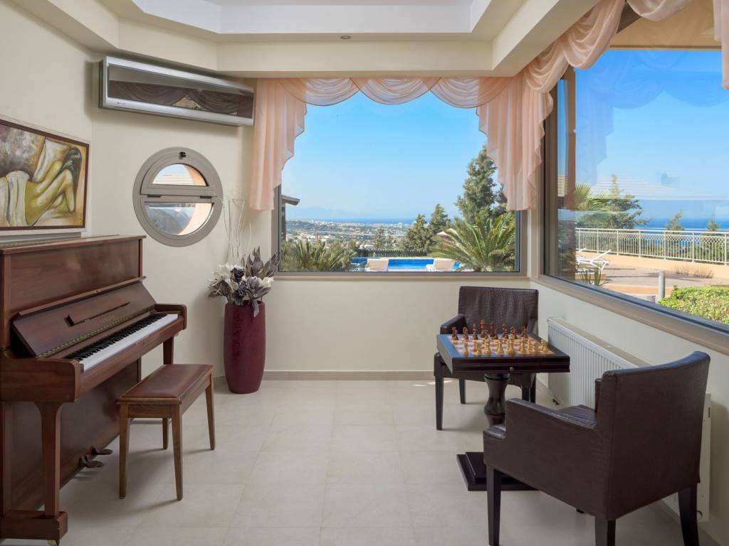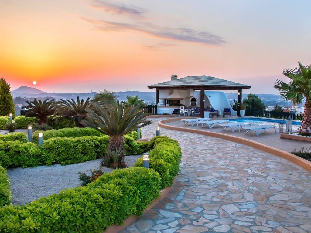 This opulent villa is in an excellent location on the outskirts of Rhodes town, offers a sense of complete privacy, with riveting views to the sea, the picturesque village of Koskinou and the town. The stylish open space of the living room, dining room and kitchen, blends with the exterior patio through the glass doors and copious windows, submerging the interior with light. A superb layout that incorporates quality, a contemporary kitchen, fireplace and WC. An impressive marble staircase (or elevator) leads to the first floor with 3 bedrooms and two bathrooms located at the front of the property overlooking the swimming pool. A master bedroom enjoys and ensuite bathroom and a dressing room while the other two bedrooms share a family bathroom. The second floor has an additional bedroom and a WC and access to a roof terrace which has an external shower. Imposing exterior spaces offer generous terraces for outdoor furniture and look out over the lovingly cared for gardens and pool, which in turn offers a great setting for relaxation in the balmy Rhodian summer. A built-in barbecue and wood oven is located under the expansive pergola for outdoor entertainment with family and friends. Set within the town limits therefore close to a wide range of infrastructure but also only 8 minutes by car to Kallithea Springs. Location: 7km southeast of Rhodes town. Unique features: Built in an amphitheatrical manner, Koskinou has developed well beyond the traditional settlement it originally was and is one of the most important medieval villages of the island. Additionally, the renowned Kalithea Springs known from the days of knights can be found a few kilometers from the village which is a popular tourist attraction surrounded by the crystal waters of the Aegean. On the outskirts of the village, the buildings are more modern; this is where wealthy people from the town of Rhodes have been having homes built in recent years, attracted by the village's short distance from town. Accessibility: A regular bus service running all year round from Rhodes town. Investment potential: Here, outstanding residential areas with exclusive real estate can be found, which in some cases boast prices that can reach twice the usual market average. Traditional houses in the old village center are also very sought after but depending on their condition, their prices can vary a lot.