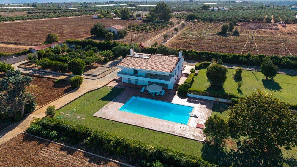 Nestled within a lush 9.5-acre estate and just minutes from the pristine Stomio Beach in Filiatra, this exceptional two-story villa with a sparkling blue pool offers the ultimate Mediterranean lifestyle. Designed for comfort and elegance, the residence spans three levels and features six spacious bedrooms, three bathrooms, a large fully equipped kitchen with an inviting living area and fireplace. Modern amenities include central heating, air conditioning, and a solar water heater, ensuring year-round convenience. The beautifully landscaped grounds, complete with fruit trees and a private water well, create a serene oasis of privacy — perfect as a permanent residence, a luxurious holiday retreat, or a high-return investment property. This rare opportunity combines luxury, space, and nature in one of Messinia’s most desirable locations. Location: Messinia is a region of Greece located in the southwestern Peloponnese. Its capital is Kalamata, while its largest towns include Messini, Filiatra, Kyparissia, Gargalianoi, Chora, and Pylos. Unique Features: Messinia is considered one of the most beautiful regions of Greece and, in recent years, has become one of the country’s fastest-growing tourist destinations. The area boasts an abundance of stunning beaches with crystal-clear waters, impressive mountains, and world-renowned archaeological sites. Messinia is also home to two important marinas, in Kalamata and Pylos, offering convenient and safe mooring for yachts. The region hosts the world-famous luxury resort Costa Navarino, which provides visitors with unforgettable experiences and high-end holidays. Additionally, a W Hotels property opened its doors overlooking the Bay of Navarino just two years ago, further enhancing the prestige of the area. Accessibility: Messinia is easily accessible by plane, with flights from Athens International Airport “Eleftherios Venizelos” to Kalamata International Airport. It can also be reached by car, and there are frequent routes connecting Kalamata with Thessaloniki, Athens, Sparta, Patras, Tripoli, and other major cities in the surrounding regions. Investment Potential: In recent years, investment interest in Messinia has grown significantly, with major hotel groups investing millions of euros and transforming the region into a premier tourist destination