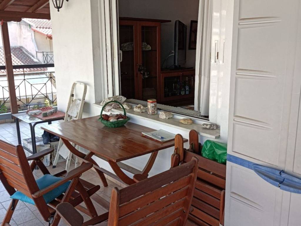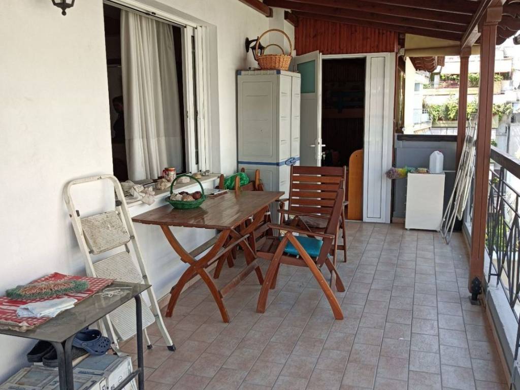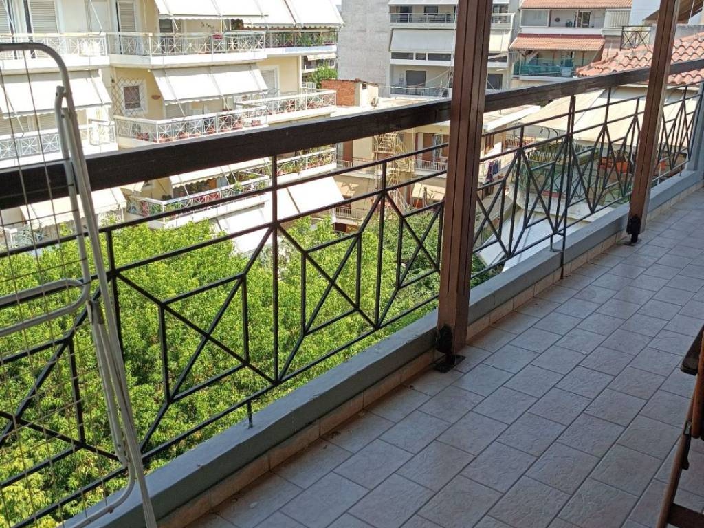 Περιοχή Άγιος Κων/νος: Πωλείται 3άρι οροφοδιαμέρισμα 92 τ.μ., 5ος όρoφος, γωνιακό, διαμπερές, ευάερο και ευήλιο, εξαιρετικής κατασκευής του 1997. Αποτελείται από σαλόνι, κουζίνα, δύο ευρύχωρα υπνοδωμάτια, μπάνιο, αποθήκη 24 τ.μ. Επίσης διαθέτει κεραμοσκεπή, ατομικό λέβητα φυσικού αερίου, ηλιακό και ηλεκτρικό θερμοσίφωνα αντίστοιχα, μεγάλα μπαλκόνια, τζάκι, δύο κλιματιστικά και πέργκολα. Τα μηνιαία κοινόχρηστα κυμαίνονται στα 30 ευρώ