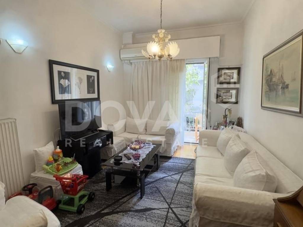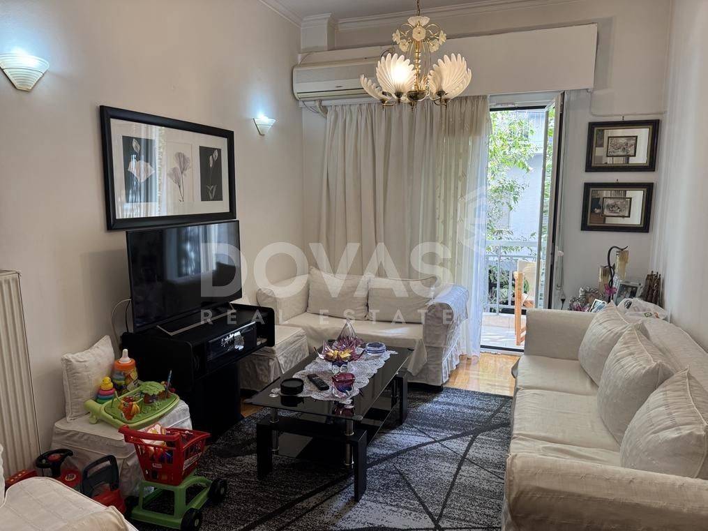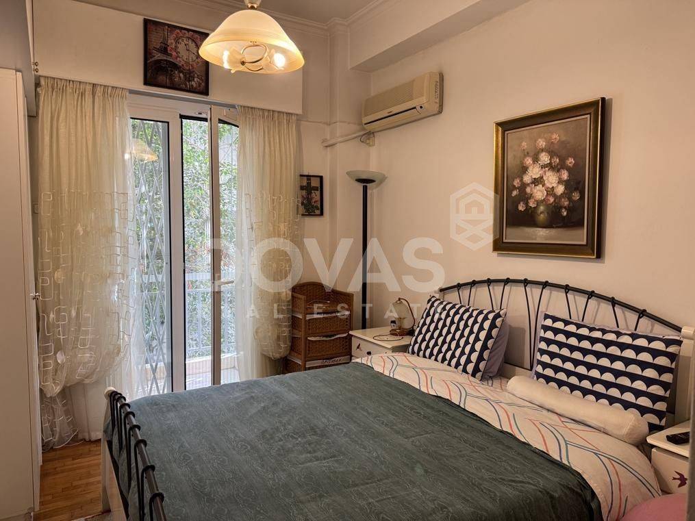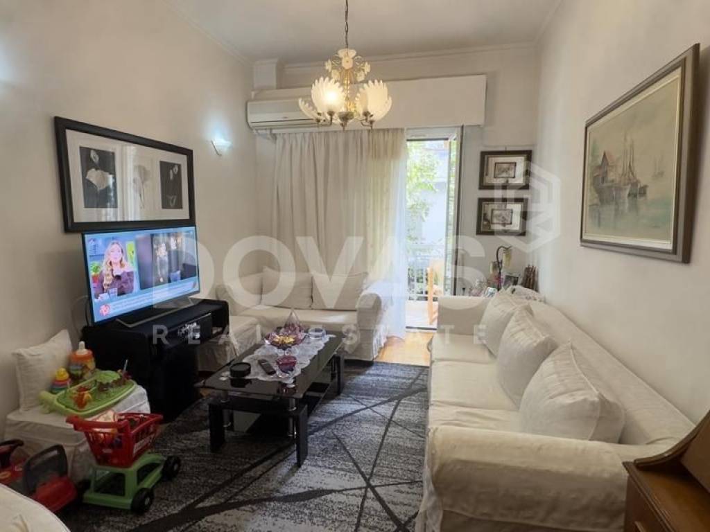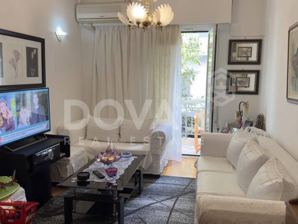 Pangrati, Alsos Pagkratiou - Apartment 67sqm unfurnished, bedrooms 2, levels 1, 1st, excellent condition, year built 1975, renovation year 2015, energy class F, living room, kitchen, bathroom, heating type: central (natural gas), air condition, luminous, frontage, painted, balconies, tents, elevator, aluminum frames, double glazed windows, door screen, wood floors, separate kitchen, secure door, residential zone, south-eastern orientation, access from asphalt, close to entertainment (up to 200m), close to bus stop (up to 100m), close to metro/train (up to 1000m), close to market (up to 200m).