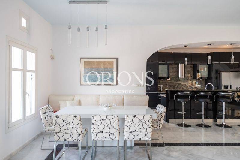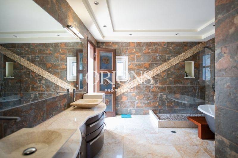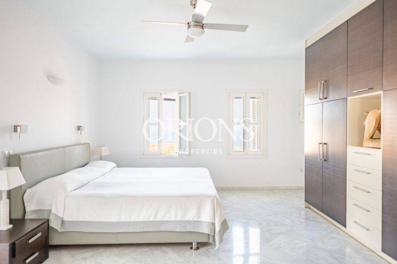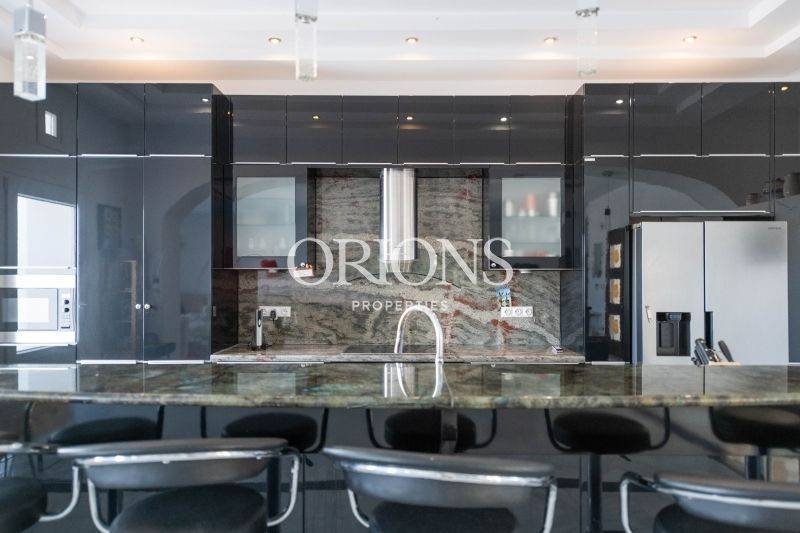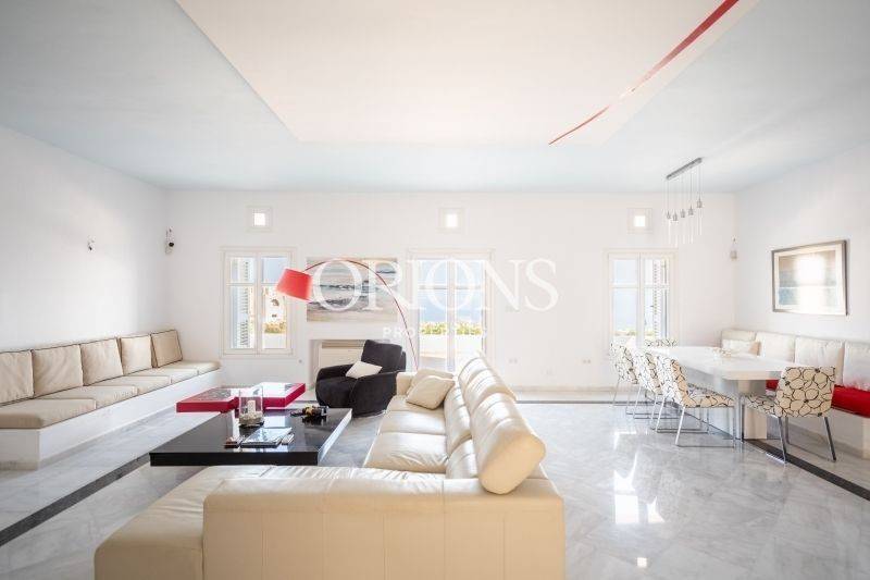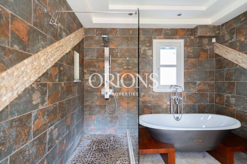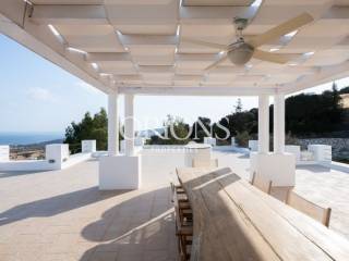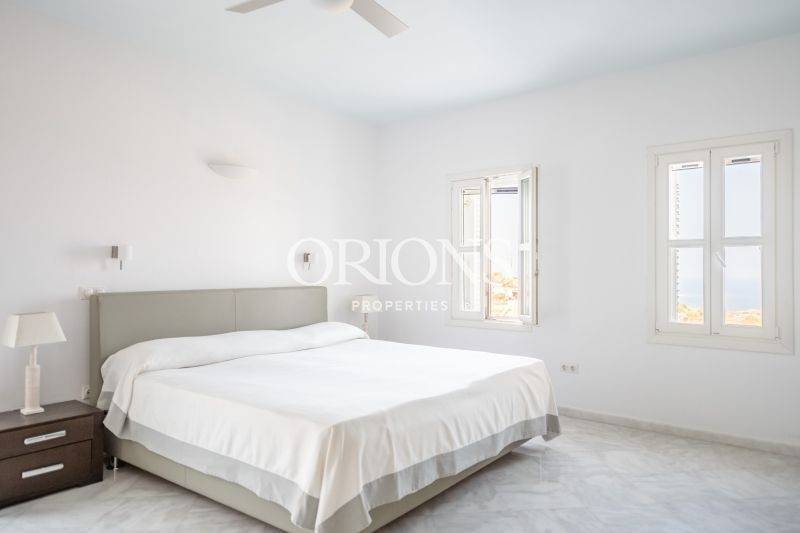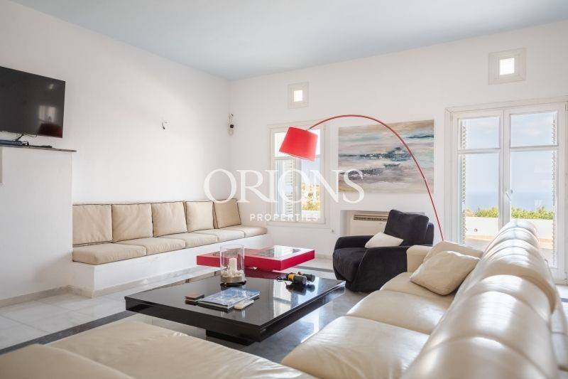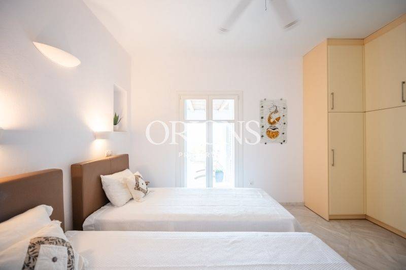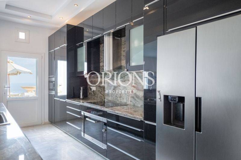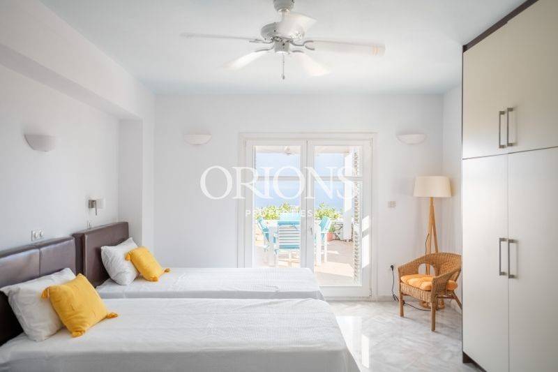 A villa of rare character, this 529 sq.m. residence rises gently above the village of Aspro Chorio, set on more than 8,200 sq.m. of verdant land filled with olive trees. From here, the horizon opens fully to the sea, while the charming village of Drios is just moments away.Designed in traditional Cycladic architecture and completed in 2008, the home unfolds across three levels, seamlessly connected by an internal elevator and a sculptural marble staircase that feels like a piece of art. Inside, the atmosphere speaks of modern luxury, with generous volumes, refined finishes, and a natural flow that connects light, space, and the sun-drenched terraces. The main living and dining area is framed by picture windows that draw the view inward, while a central light fixture and a stone fireplace create a warm, inviting focal point. A fully fitted marble kitchen with sleek countertops and a central island completes the heart of the home, blending functionality with understated elegance.On the lower level, leisure takes center stage with a beautifully designed games room, complete with a billiards table and bar, a relaxed, social space to enjoy with friends and family when not lounging outdoors by the pool.Outside, the villa expresses its full Cycladic charm. Expansive terraces and shaded pergolas invite slow afternoons with the endless blue of the sea as a backdrop. A private outdoor kitchen, complete with professional-grade grills and a generous dining area beneath the pergola, becomes the perfect stage for long summer evenings, filled with food, sea air, and conversation. Three en-suite bedrooms open directly onto this tranquil outdoor world, each offering graceful interiors and its own share of the view.The upper level is dedicated to the primary suite, a serene retreat with its own private terrace, while within the grounds, a detached guesthouse offers complete privacy and independence.The estate is also a living, productive landscape: from about one hundred and fifty of its finest olive trees, over 500 kilograms of olives are typically harvested each year, yielding around 76 kilograms of exceptional extra virgin olive oil, a tangible expression of the land’s richness and the authentic Aegean way of life.The villa is designed for year-round comfort and enjoyment, featuring amenities such as a jacuzzi, dressing room, laundry area, ample storage throughout, as well as three large solar panels that support the hot water system.The location is equally exceptional. Just a short drive away are some of Paros’ most iconic beaches, including Golden Beach, a stretch of fine sand and turquoise water, beloved by swimmers and kite surfers alike. The area combines the energy of the sea with the calm rhythm of village life, offering both adventure and serenity.This is a home that balances tradition with contemporary comfort, privacy with openness. More than just a villa, it is a place to live the Cycladic rhythm, shaded lunches under the pergola, swims in the private pool, cozy evenings by the fire, and long days that unfold between the sea and the garden.