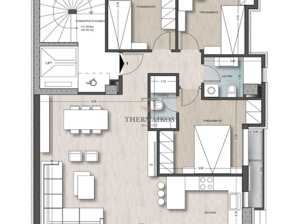 Πωλείται νεόδμητο, οροφοδιαμέρισμα, 118τ.μ., στην περιοχή "Καλαμαριά". Πρόκειται για ένα πολυτελές, διαμπερές και φωτεινό ακίνητο. Βρίσκεται στον 6ο όροφο της οικοδομής και διαθέτει ασανσέρ. Αποτελεί μια αξιόλογη επιλογή για οικογένειες. Αυτή τη στιγμή βρίσκεται υπό κατασκευή. Αποτελείται από 3 υπνοδωμάτια με ντουλάπες, σαλοκουζίνα, 1 μπάνιο και 1 WC. Επιπλέον διαθέτει βεράντα, αποθήκη και θέση στάθμευσης. Στα εσωτερικά του στοιχεία αξίζει να σημειωθούν η θωρακισμένη πόρτα και η δομημένη καλωδίωση. Διαθέτει κουφώματα αλουμινίου με διπλά τζάμια. Τα δάπεδα είναι από ξύλο και πλακάκια. Διαθέτει αυτόνομη θέρμανση με αντλία θερμότητας (ατομική). Επιπρόσθετα υπάρχει ενδοδαπέδια θέρμανση. Η ενεργειακή του κλάση είναι A+. Βρίσκεται κοντά σε στάση λεωφορείου, στάση μετρό, αεροδρόμιο και σχολείο. Τιμή πώλησης: 480000€. Το ακίνητο είναι άμεσα διαθέσιμο. Κωδικός ακινήτου: 10354 Για περισσότερα ακίνητα επισκεφθείτε την ιστοσελίδα μας http://www.thermaikosrealest.gr. Thermaikos Real Estate Κλεάνθους 39, Θεσσαλονίκη, Ελλάδα http://www.thermaikosrealest.gr info@thermaikosrealest.gr Τηλέφωνο: 2310900700 Κινητό: 6907218688 ΥΠΕΥΘΥΝΟΣ ΑΚΙΝΗΤΟΥ: ΠΑΠΑΔΟΠΟΥΛΟΣ ΛΑΖΑΡΟΣ Προσοχή! Για την υπόδειξη του ακινήτου είναι απαραίτητη η υπόδειξη της αστυνομικής ταυτότητας και του Α.Φ.Μ. σας σύμφωνα με τον Ν.4072/11-4-2012 ΦΕΚ 86 Α.