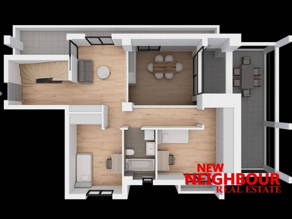 For sale under construction penthouse maisonette 4th-5th floor 190sqm in Agia Paraskevi. On the 4th floor of 94.57sqm has a comfortable living room with open kitchen, dining room, 1 master bedroom with dressing room and a guest wc. On the 5th floor of 74.75 m has a living room, 2 bedrooms and a bathroom. Finally, the attic of 13sq.m that can also be used for an office, exclusive use of a 63sq.m roofed terrace with kitchenette and BBQ. It has autonomous heating with natural gas, energy fireplace, aluminum frames with thermal break, double energy glazing, screens, security door, thermal facade, energy class A, parking for 2 cars and storage room. Delivery 8/2026. Located near the market and the metro of Agia Paraskevi. Price: €840,000 Code: 21865
