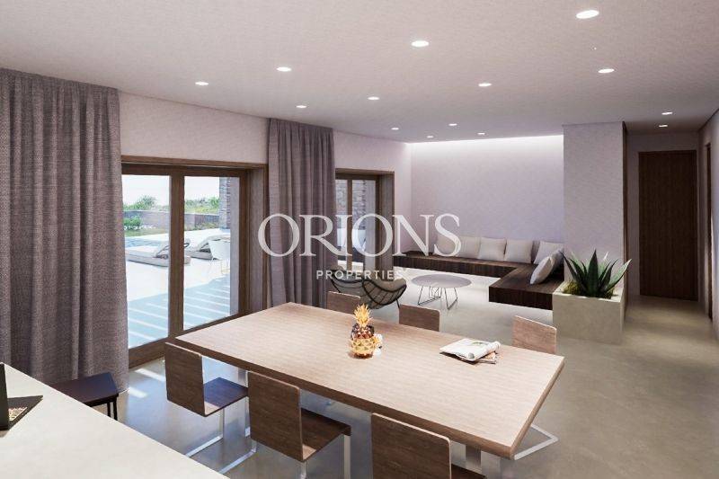 This 200 sq.m. villa sits on a 4,635 sq.m. plot and is designed for comfort and modern island living. It will feature four bedrooms, a spacious living room, a fully equipped kitchen, four bathrooms and an additional WC.