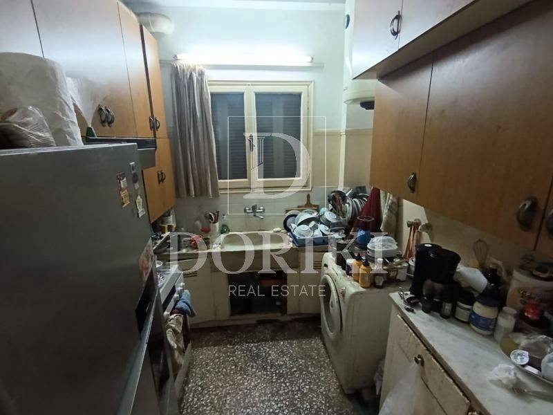 Kypseli, Nea Kypseli - Apartment 81sqm bedrooms 2, levels 1, 3rd, needs renovation, year built 1960, energy class E, living room, kitchen, bathroom, heating type: central (natural gas), dual aspect apartment, luminous, unobstructed view view, frontage, balconies, elevator, loft storage, wooden frames, wood & mosaic floors, separate kitchen, office, secure door, video doorbell, residential zone, access from asphalt, close to bus stop (up to 100m), close to market (up to 100m), close to square (up to 100m), close to university/college (up to 1000m).