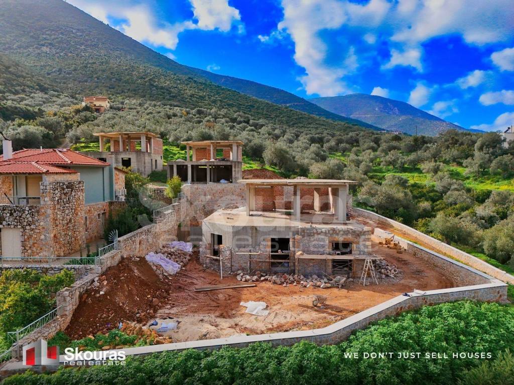 In an exceptional location in Ancient Epidaurus, near from the picturesque village, traditional shops, the world-famous ancient theatre, and the beaches of the region, a unique villa of 146 sq.m. is offered for sale, set on a 1,100 sq.m. plot. The property is under construction and designed on two levels, combining comfort, functionality, and elegant architecture. The ground floor consists of three bedrooms, three bathrooms, a 30 sq.m. storage room, and a wellness area with jacuzzi and spa, offering an atmosphere of luxury and relaxation. On the first floor, there is a bathroom, a kitchen, and a spacious living-dining area with a fireplace, which forms the heart of the home. From here, access to a large balcony with panoramic sea views creates an ideal setting for moments of peace and serenity. The outdoor area features a 3.4 x 6.5 m private pool, a comfortable seating area with BBQ for entertaining, and parking space for up to four cars. The plot is bordered by a traditional stone wall, ensuring privacy and enhancing the character of the residence. Construction is carried out with top-quality materials and great attention to detail, while the use of stone and large openings harmoniously blend traditional charm with contemporary design. The villa is part of a well-designed residential complex, surrounded by similar houses with gardens and pools, creating an environment of both privacy and harmonious neighborhood living. The nearest organized beach is only a five-minute drive away, providing easy access to crystal-clear waters and full amenities. The works are scheduled to be completed before summer 2026. Skouras Real Estate #1 Greek Real Estate Agency in the Peloponnese 4 Offices: Nafplio | Kalamata | Corinth | Porto Heli 3000+ Properties | 18+ Years of Experience | Support in 5 Languages Marketing & Website – European Property Awards 2020 Marketing Techniques & Development – EPPA 2022 & 2024 Call Center: +30 27520-29529 Mobile: +30 6980033022 Email: alr@skourasrealestate.gr Property Manager: ROYS Alexis Over 3,000 properties available at: www.skourasrealestate.gr Note: The property information is based on data provided by the owners. Skouras Real Estate bears no responsibility for any inaccuracies. ID card or passport required for property visits. Map locations are approximate.