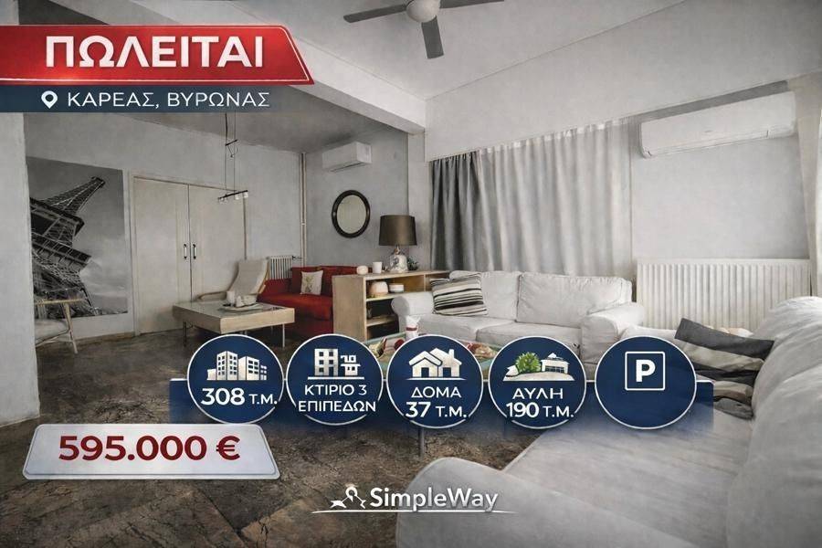 Vyronas, Kareas - Detached House 308sqm plot 295sqm, bedrooms 6, levels 3, ground floor - 1st - 2nd, needs renovation, year built 1973, renovation year 2010, energy class D, 3 living rooms, 3 kitchens, 3 bathrooms, 2 wc, heating type: autonomous (oil), air condition, parking open space, dual aspect apartment, luminous, unobstructed view, storage space, balconies, large balconies, balcony 30sqm, wood & marble floors, secure door, residential zone, south-eastern orientation, access from pedestrian street.