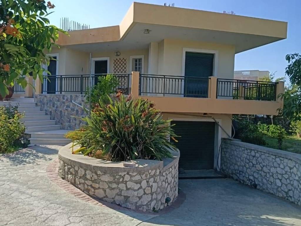Πρώτος όροφος 120 τετραγωνικά 3 υπνοδωμάτια 2 μπάνια καθιστικό τραπεζαρία κουζίνα ενιαίο μεγάλες βεράντες. Υπόγειο: 2 γκαρσονιέρες περίπου 40m τετραγωνικα εκάστη ,50 τετραγωνικά αποθήκη/γκαράζ με εσωτερική σκάλα προς τον όροφο. Ο κήπος έχει οποροφορα δένδρα κ λουλούδια .. αυτόματο πότισμα Κάγκελοπορτα με ηλεκτρικο μηχανισμό. Η θέρμανση του σπιτιού επιτυγχάνεται με αντλία θερμότητας.