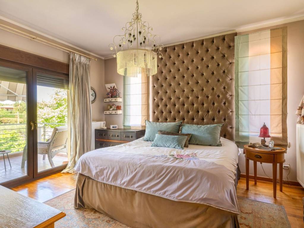 If you are looking for freedom, if your limits are only the sky and the horizon, if returning home gives you the opportunity to get closer to nature, then this house could be your new acquisition! In Kardia in a quiet place with easy access to the city of Thessaloniki is this property with a beautifully garden. It is a 260 sq.m. villa spread over 3 acres with sea views and a secondary house with a special country aesthetic. The main house consists of a living room, dining room, kitchen, guest WC and a living room - which can be converted into a bedroom as it has its own bathroom. Upstairs we find 2 bedrooms and a bathroom, as well as the master bedroom with ensuite bathroom and walk-in closet. From the balconies you can enjoy the view of the garden and on the horizon, the sea. The second building of a special rustic country architecture consists of an open plan living room, a bedroom and a bathroom. In addition, it has a loft that can be used as a bedroom. The garden of the house is lush with tall trees offering shade, children's swings , slide , fountain and many beautiful plants. The Energy Performance Certificate is currently being issued. Kardia Thessaloniki is located in the south of Thessaloniki, and is an amphitheater suburb with an excellent view of the sea. Very close to the airport and direct access to Halkidiki and Thessaloniki, as it is located right on the main highway. It is also close to Trilofos, Plagiari and Scholari. This is an excellent choice for living for those who love peace and nature as it is located in a very beautiful environment. It has its own small market and transport from “OASTH” to downtown. There are properties of various types: from plots, apartments, maisonettes and unique detached houses.
