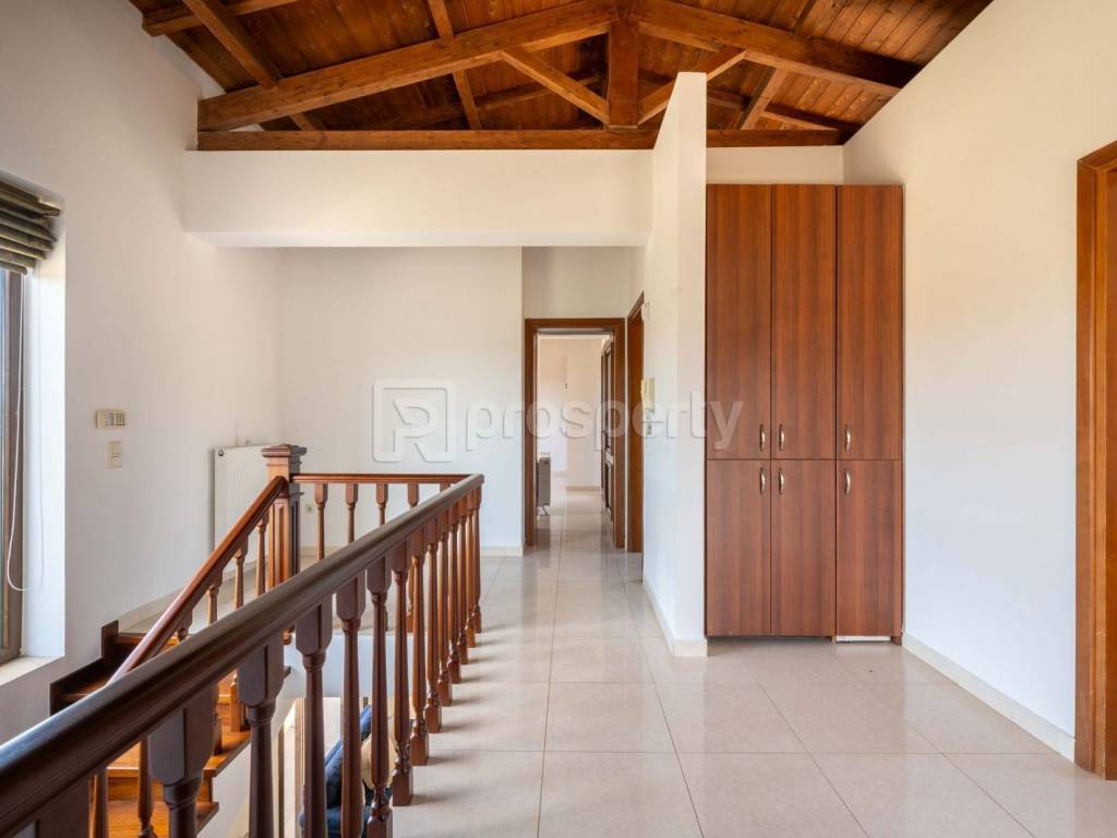 Villa of 430 sq.m. on a 6,000 sq.m. plot in Porto Rafti, Markopoulo. This bright villa, built in 2008, spans three floors and includes a semi-basement with an independent entrance that can function separately. The floors are tiled with custom made wooden elements on the internal staircase and kitchen The property features five bedrooms, a walk-in closet in the master bedroom, four bathrooms, two kitchens, two living rooms, 2 fireplaces, a playroom, large verandas on both facades, and a dual-aspect layout providing abundant natural light and ventilation. Additionally, it includes a 32 sq.m. swimming pool, a BBQ area, and an outdoor space with a sunshade for relaxation. Key advantages of the villa include its location just a 5-minute drive from the beach and 20 minutes from the airport, less than 5 minutes from local amenities such as bars, cafes, supermarkets, and restaurants, and a setting that offers privacy and views of the surrounding countryside. https://marketplace.theprosperty.com/listings/14075 ☎️ 210 6812500