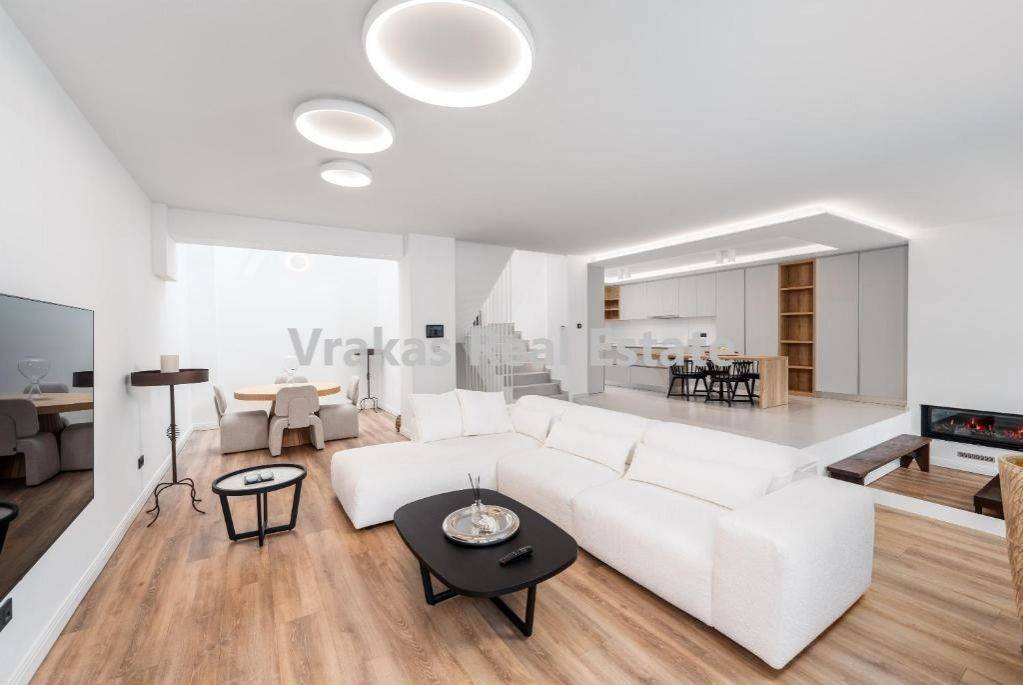 Detached house For sale, floor: Basement, Ground floor, 1st (3 Levels), in Diakopto. The Detached house is 293 sq.m. and it is located on a plot of 1.600 sq.m.. It consists of: 3 bedrooms (1 Master), 2 bathrooms, 1 wc, 2 kitchens, 2 living rooms and it also has 2 parkings (2 Closed). The property was built in 2020. Its heating is Autonomous with Heat pump, Underfloor heating, Air conditioning, Solar water system are also available, it has Alluminum frames with Double glazed windows, the energy certificate is: Under publication and its floors are Tiles, Marble. The property's status is: Excellent condition, it is close to Sea, Seaside, it has Sea, Nature, Openness, Unobstructed view. The Detached house is With Facade, Bright, Ramp / Wheelchair access, Detached, Luxury and it also has the following unique features and advantages: Window Screens, Energy fireplace, Storage, Internal staircase, Swimming pool, Garden, Security door, Playroom, BBQ, Automatic watering, Grass, Energy autonomous, Solar panels, Porch. Price: €700.000. Χαράλαμπος Βρακάς, contact phone: 6947373392, email: chvrakas8@gmail.com, website: vrakasrealestate.gr